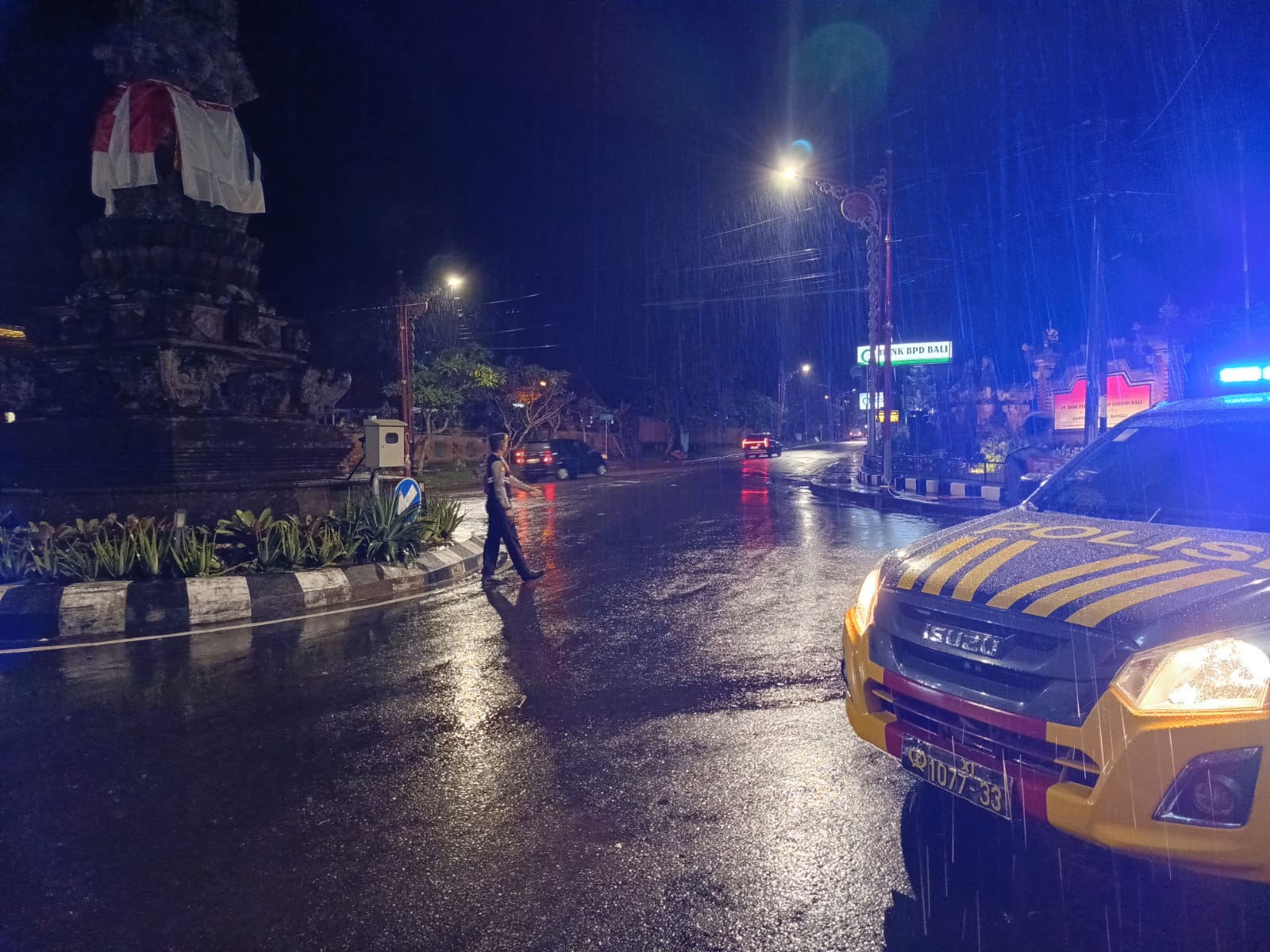 Sat Samapta Laksanakan Gatur dan Pergelaran Blue Light Randis R4 di Pusat Keramaian Malam Di Kota Bangli Demi Kenyamanan Dan Kelancaran Arus Lalu lintas Pada Malam.