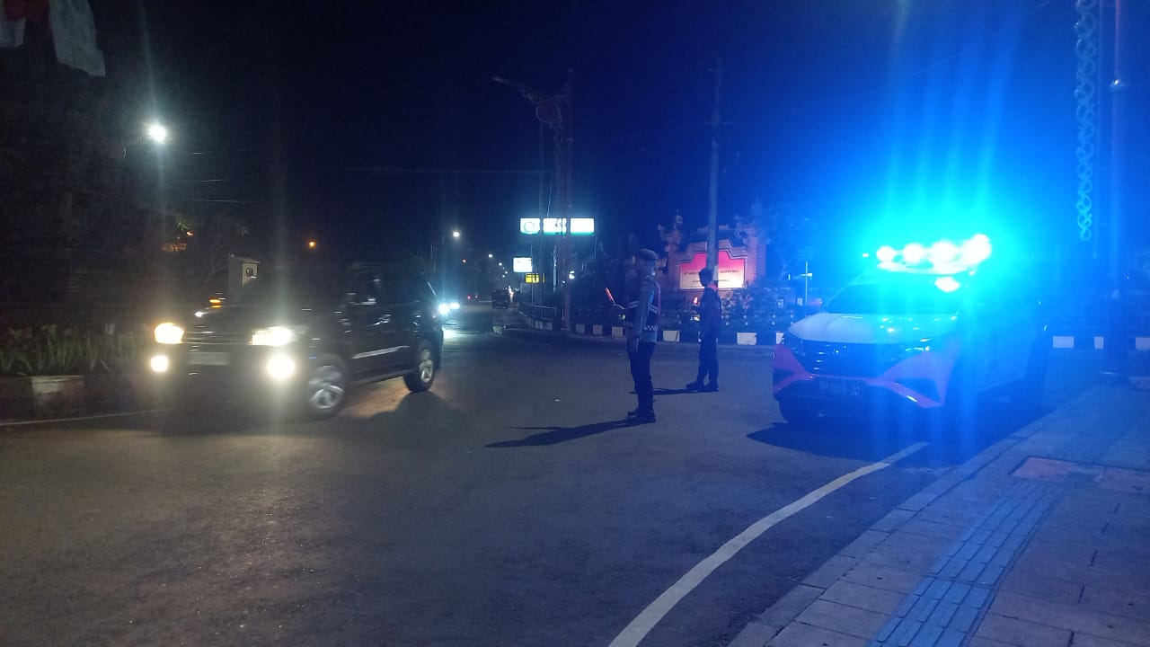 Sat Samapta Laksanakan Gatur dan Pergelaran Blue Light Randis R4 di Pusat Keramaian Malam Di Kota Bangli Demi Kenyamanan Dan Kelancaran Arus Lalu lintas Pada Malam.