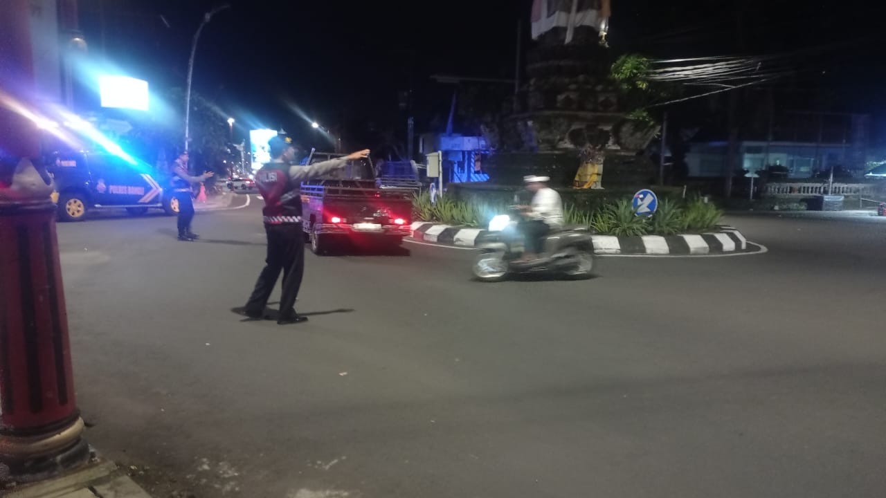 Sat Samapta Laksanakan Gatur dan Pergelaran Blue Light Randis R4 di Pusat Keramaian Malam Di Kota Bangli Demi Kenyamanan Dan Kelancaran Arus Lalu lintas Pada Malam.