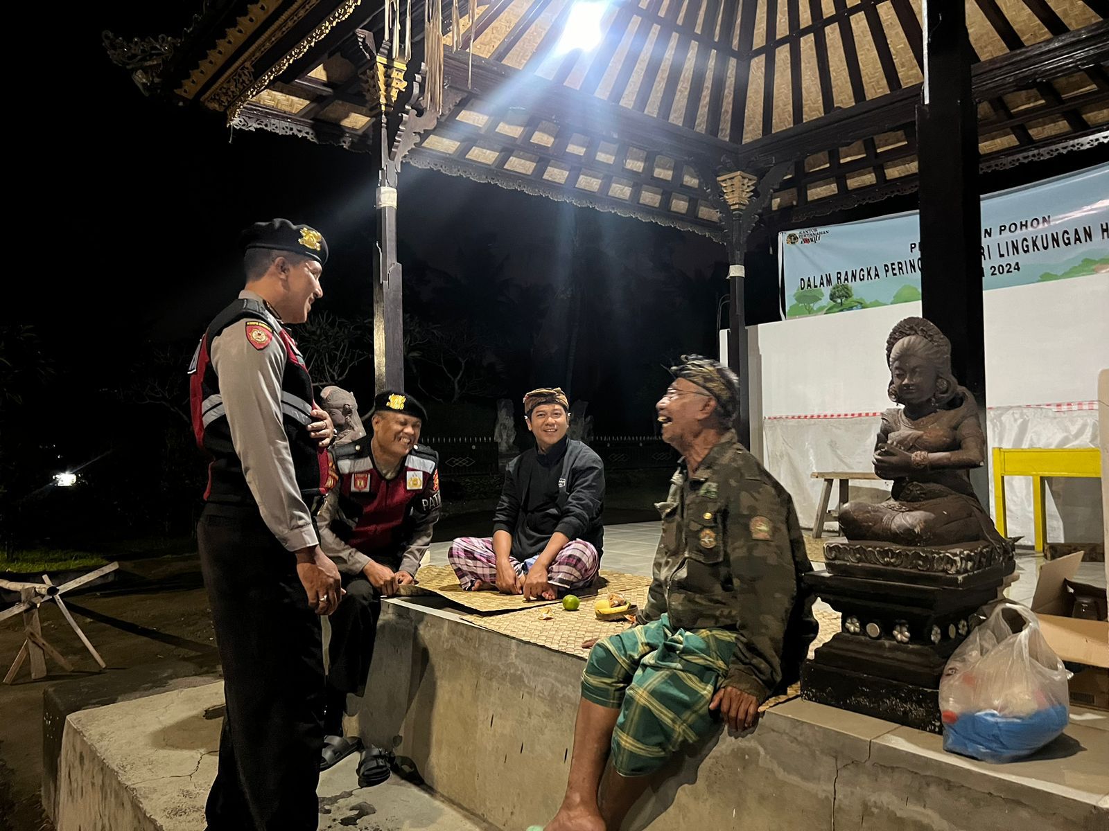 Tindak kejahatan selain terjadi pada siang hari juga sering terjadi pada malam hari, khususnya pada jam rawan dimana situasi yang berkembang pada saat ini banyak terjadi kejahatan yang menyasar tempat suci khususnya pura sehingga guna mencegah hal tersebut, dan berdasarkan Sprin Kapolres Bangli Nomor: Sprin/15/I/PAM.1.3./2024 tanggal 01 Januari 2024, maka Sat Samapta dari Unit Turjawali pada hari Rabu tanggal 01 Januari 2025, 4 personil melaksanakan patroli dialogis dengan krama pekemitan di Pura Dalem Penunggekan, Bangli.