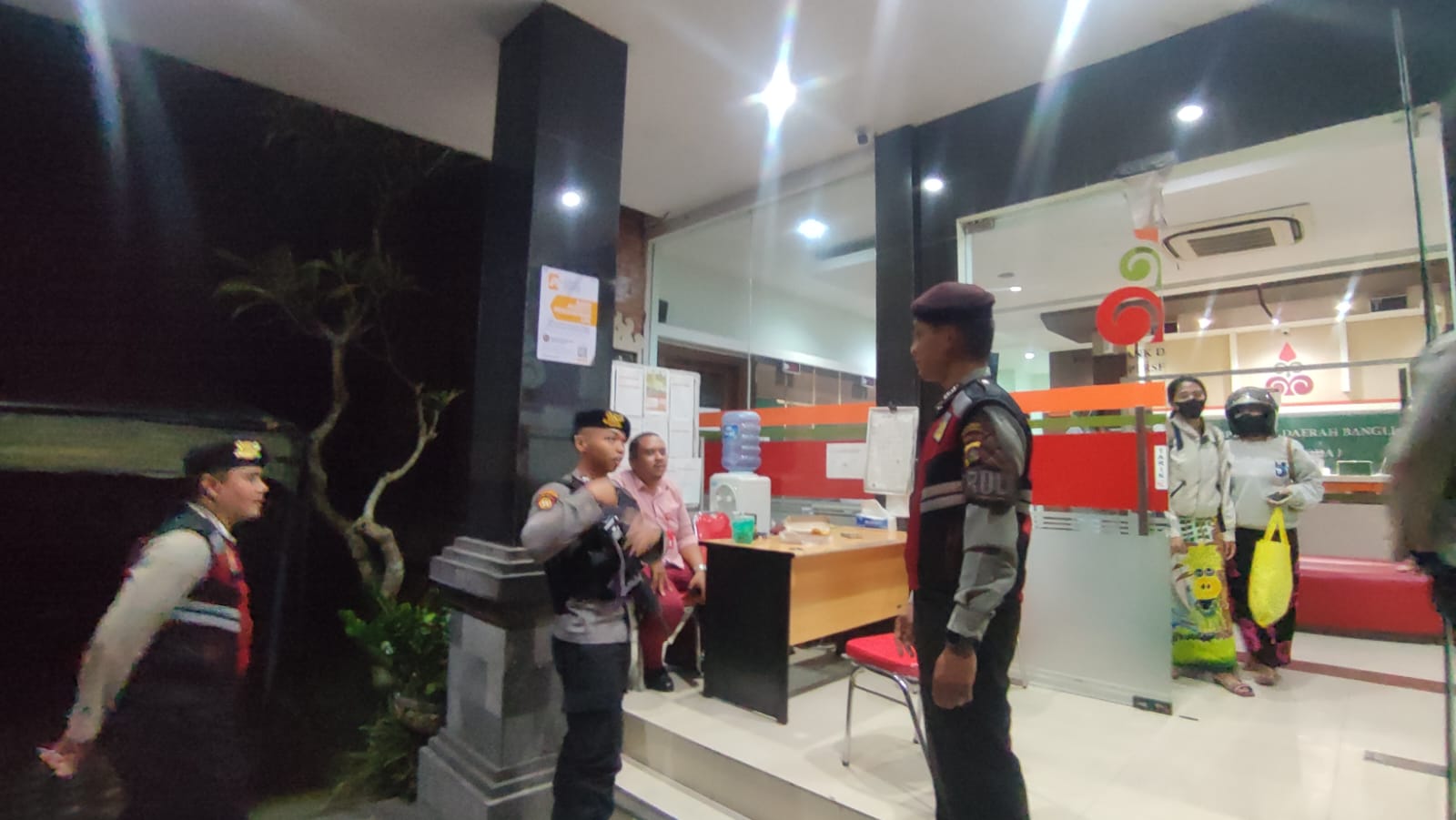 Sat Samapta Res Bangli Laksanakan Patroli Dialogis Dan Himbauan Kamtibmas Kepada Satpam Obyek Vital Bank Daerah Bangli.
