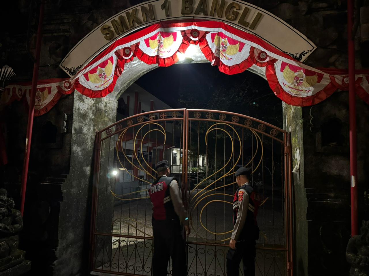 Satuan Samapta Polres Bangli Laksanakan Patroli Pada Malam Hari di SMK N 1 Bangli, Kel. Kawan, Kec. Bangli, Untuk Antisipasi Gangguan Kamtibmas.
