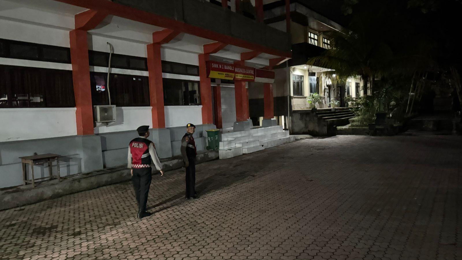 Satuan Samapta Polres Bangli Laksanakan Patroli Pada Malam Hari di SMK N 1 Bangli, Kel. Kawan, Kec. Bangli, Untuk Antisipasi Gangguan Kamtibmas.
