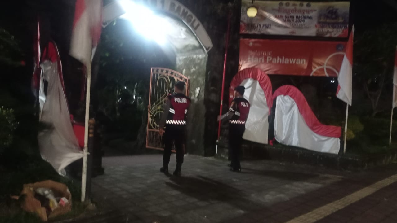 Berdasarkan Sprin Kapolres Bangli Nomor: Sprin/15/I/PAM.1.3./2024 tanggal 01 Januari 2024 , guna mencegah terjadinya gangguan Kamtibmas maka pada hari jumat tanggal 20 Desember 2024, Pukul 23:00 Wita, 4 personil Satuan Samapta dari Unit Turjawali Polres Bangli melaksanakan patroli malam hari di SMKN 1 Bangli untuk antisipasi terjadinya tindak pencurian yang menyasar Sekolah, personil memberikan himbauan dalam kesempatan patroli malam hari agar meningkatkan kewaspadaan dengan memberdayakan petugas waker serta menghimbau agar di pasang CCTV untuk mengantisipasi terjadinya tindakan pencurian.