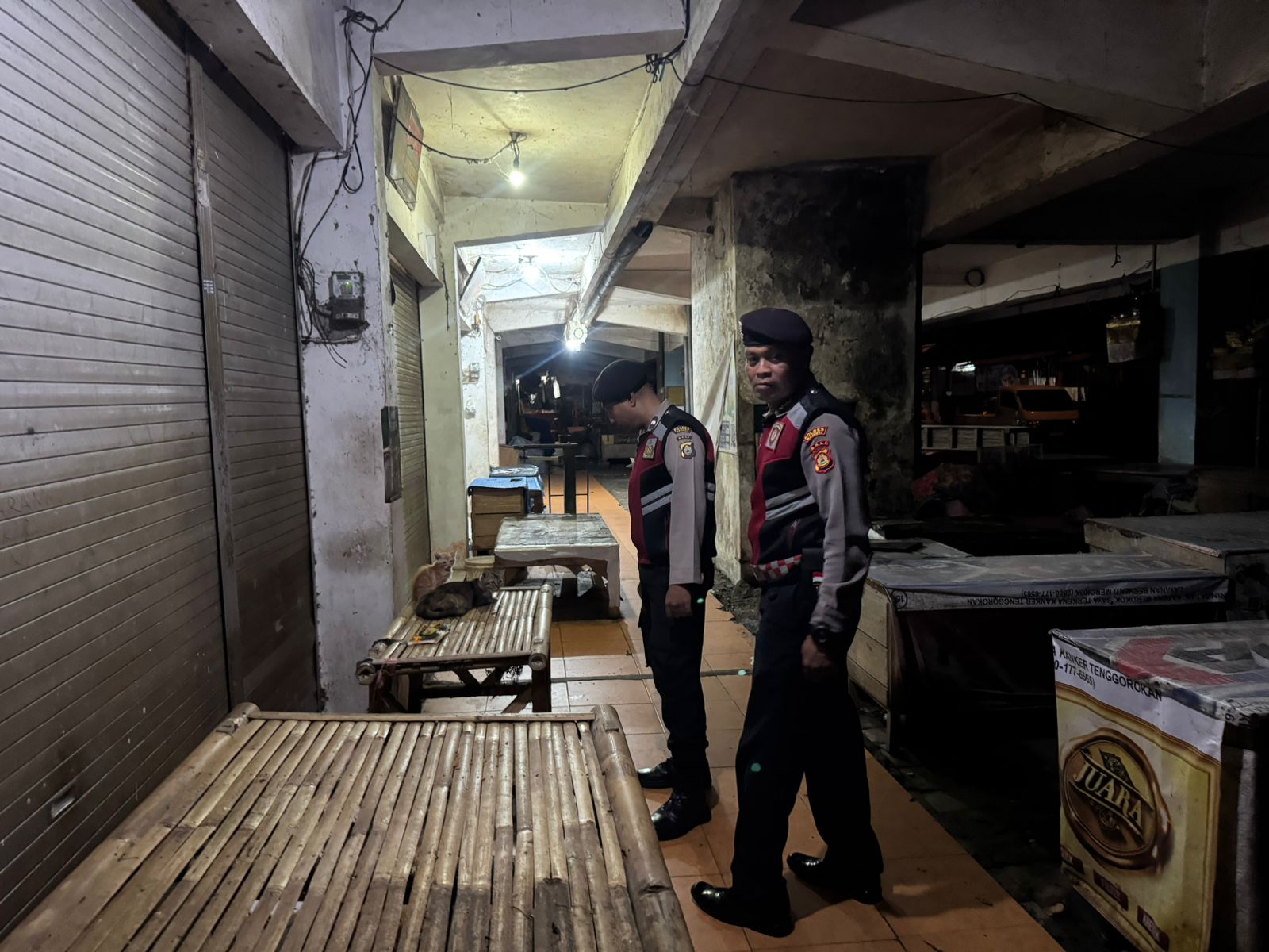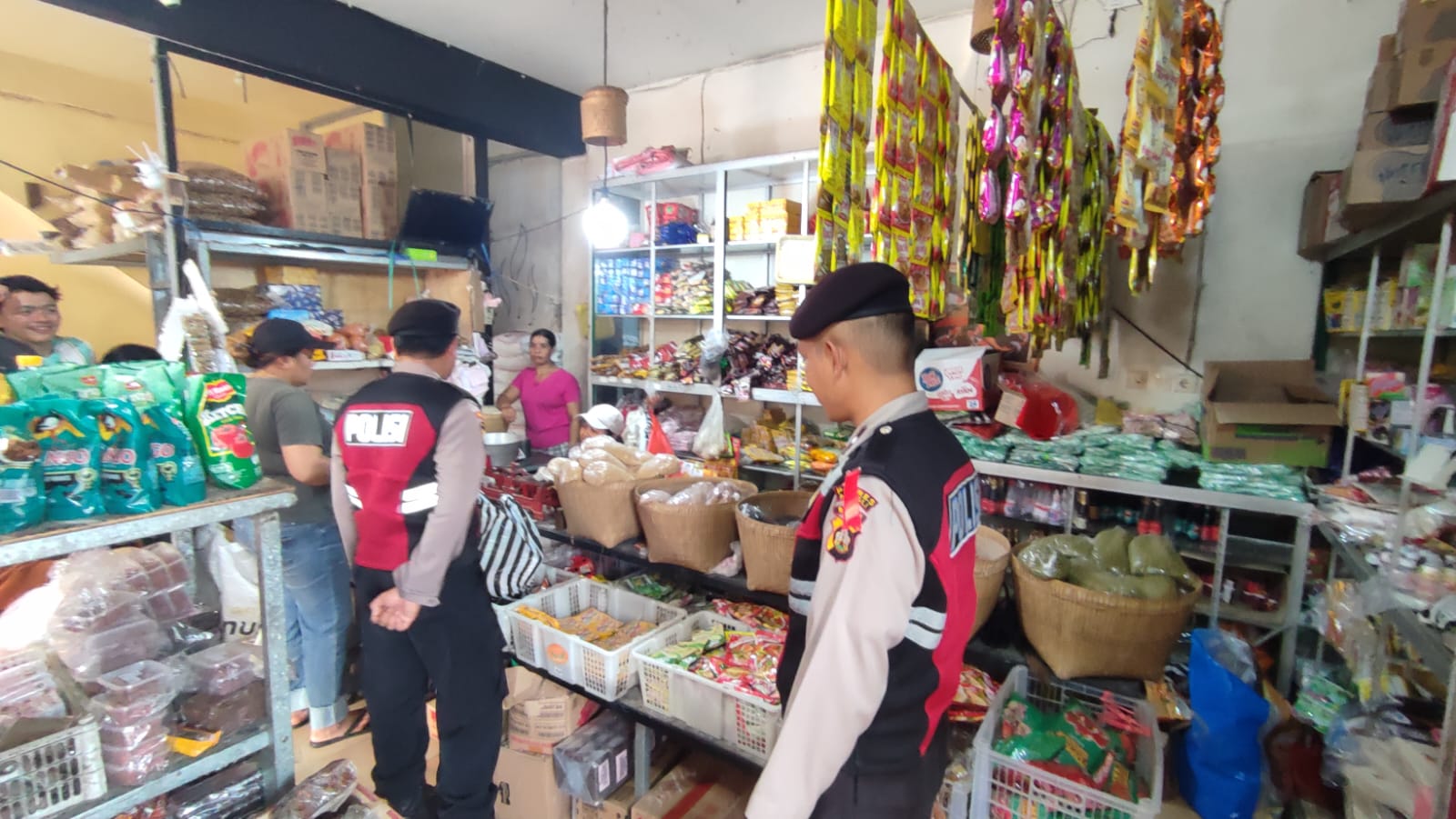 Antisipasi Gangguan Kamtibmas Pada Malam Hari, Personil Samapta Polres Bangli Lakukan Patroli Malam di Areal Pertokoan Pasar Kidul Bangli.