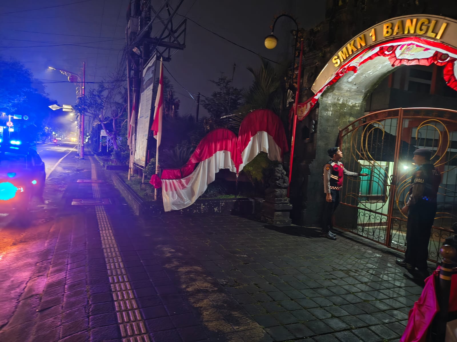 Satuan Samapta Polres Bangli Laksanakan Patroli Pada Malam Hari di SMKN 1 Bangli, Kel. Kawan, Kec./kab. Bangli, Untuk Antisipasi Gangguan Kamtibmas.