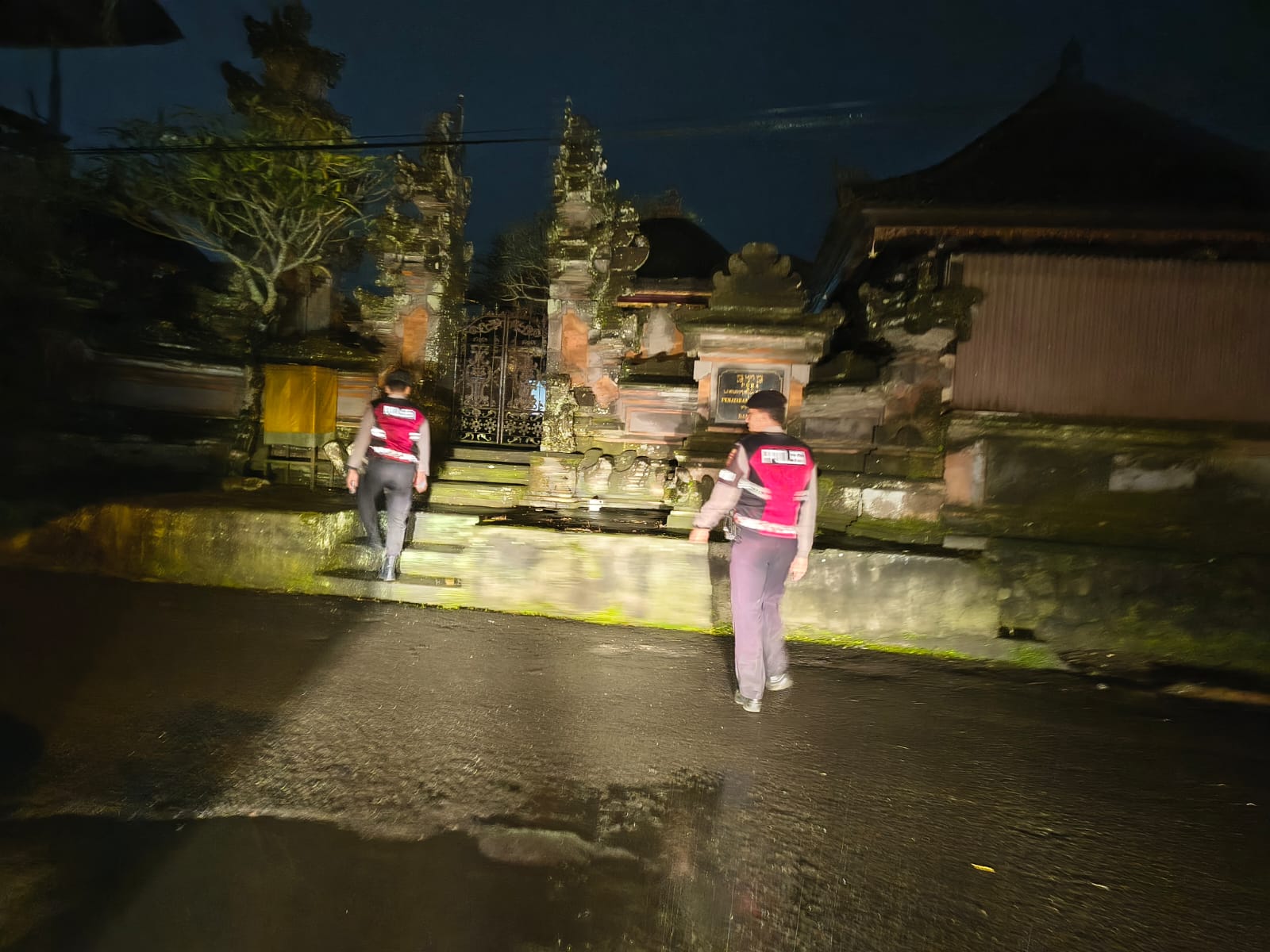 Menjaga Situasi Tetap Kondusi Pada Malam Hari,Sat Samapta Polres Bangli Sambangi Tempat Suci Pura Penataran Er Malet ,Br Pule, Bangli