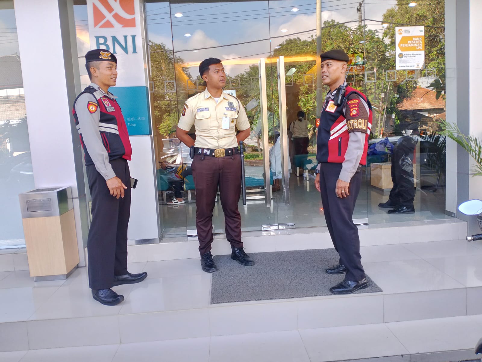 Sat Samapta Res Bangli Laksanakan Patroli Dialogis Dan Himbauan Kamtibmas Kepada Satpam Obyek Vital Bank BNI Cabang Bangli.