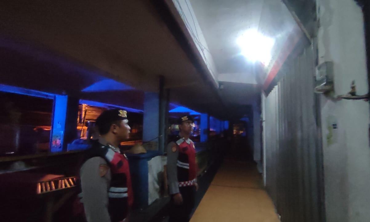 Antisipasi Gangguan Kamtibmas Pada Malam Hari, Personil Samapta Polres Bangli Lakukan Patroli Malam di Areal Pertokoan Pasar Kidul Bangli.