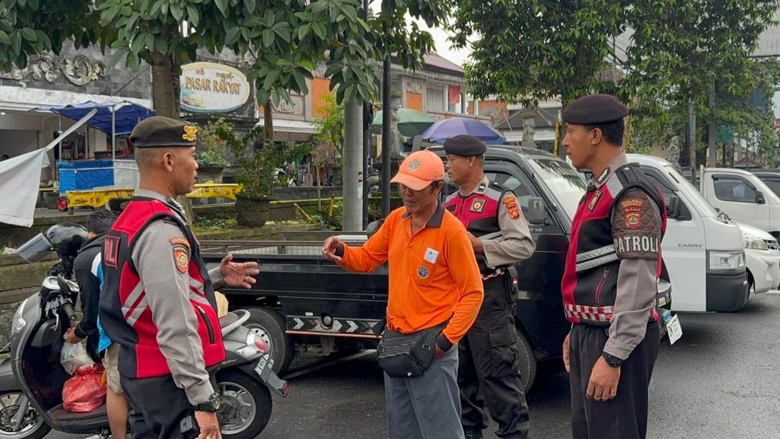 PERKECIL RUANG GERAK AKSI CURANMOR DIWILKUM BANGLI PERSONIL SAMAPTA POLRES BANGLI SAMBANGI TUKANG PARKIR