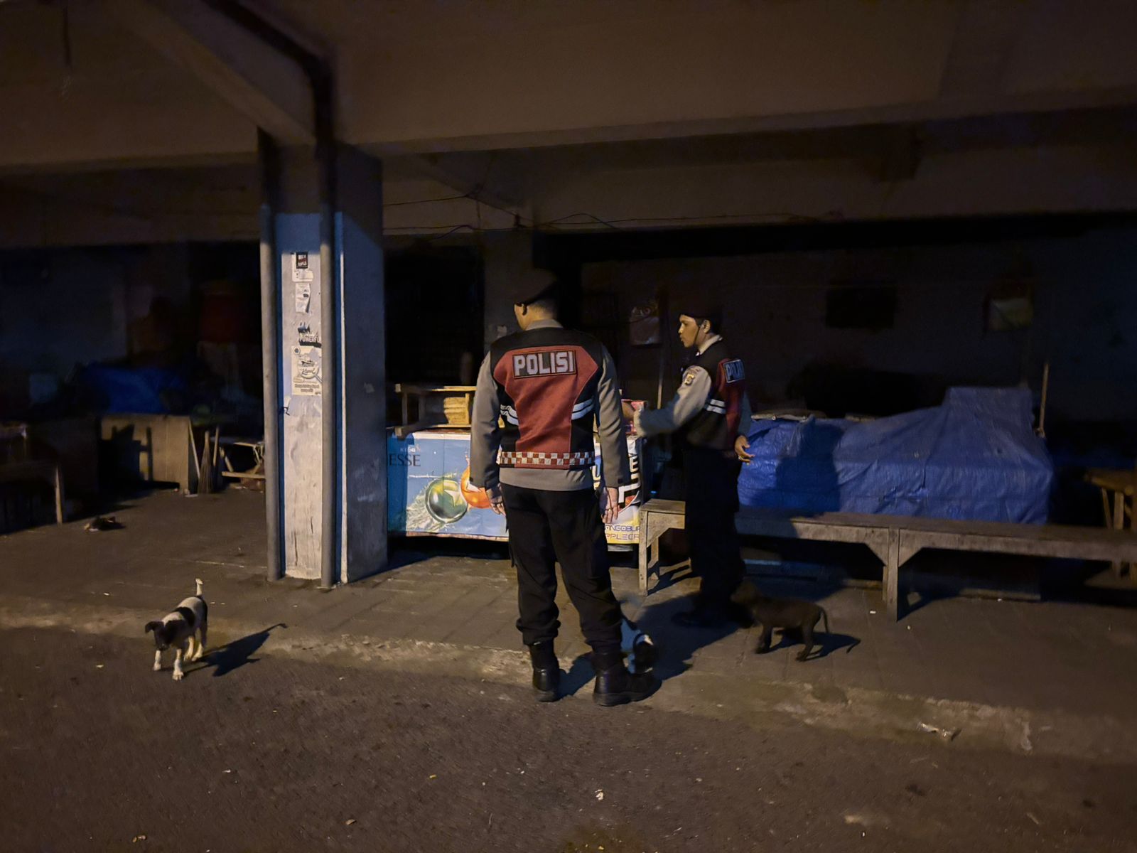 Antisipasi Gangguan Kamtibmas Pada Malam Hari, Personil Samapta Polres Bangli Lakukan Patroli Malam di Areal Pertokoan Pasar Kidul Bangli.