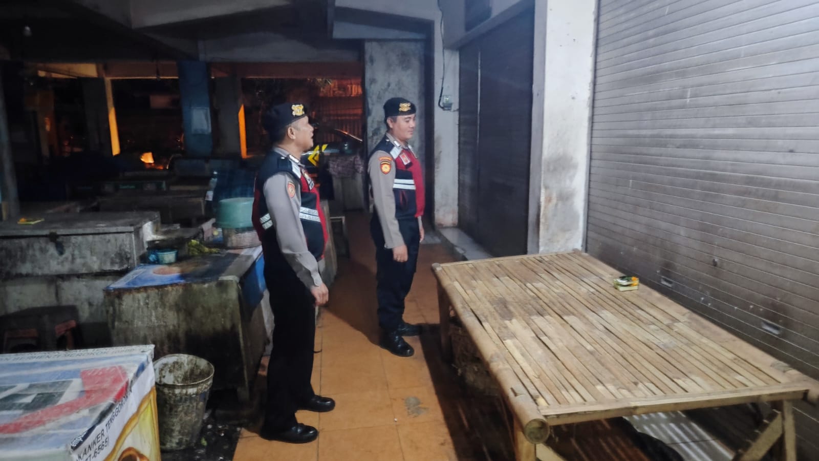 Antisipasi Gangguan Kamtibmas Pada Malam Hari, Personil Samapta Polres Bangli Lakukan Patroli Malam di Areal Pertokoan Pasar Kidul Bangli.