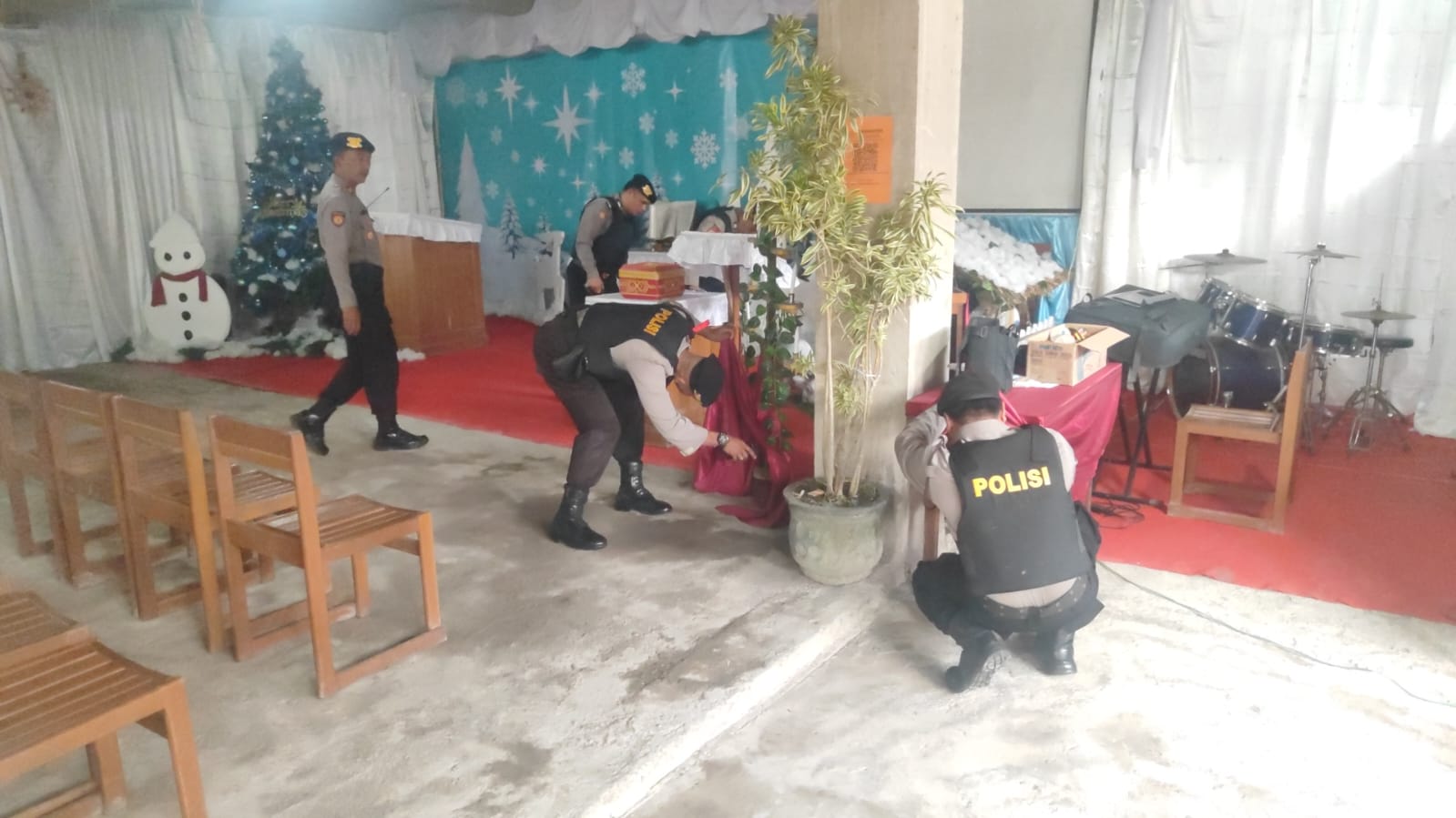 Personel Sat Samapta Polres Bangli Laksanakan Sterilisasi Gereja Jelang Ibadah Malam Kudus