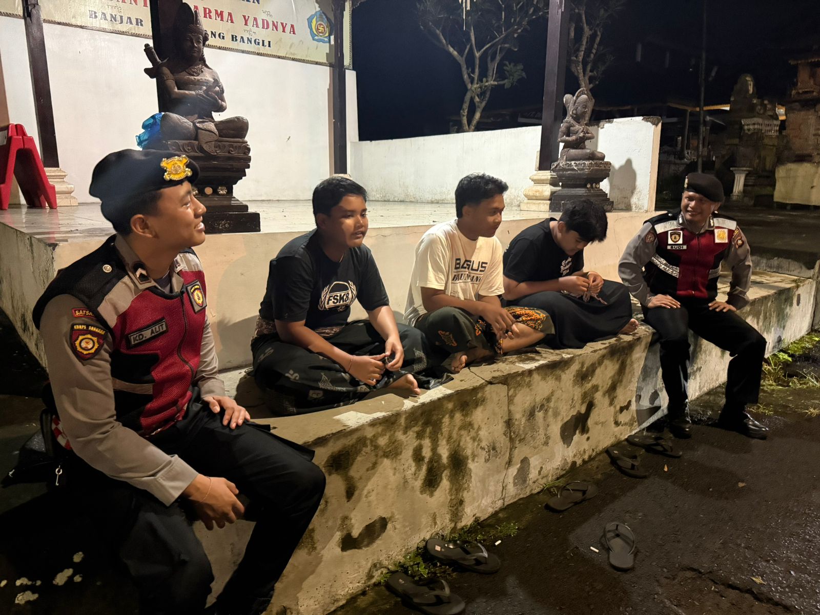 Sat Samapta Melaksanakan Patroli Dialogis Memberikan Himbauan Kamtibmas Kepada Krama Pekemitan Di Pura Dalem Penunggekan, Bangli.