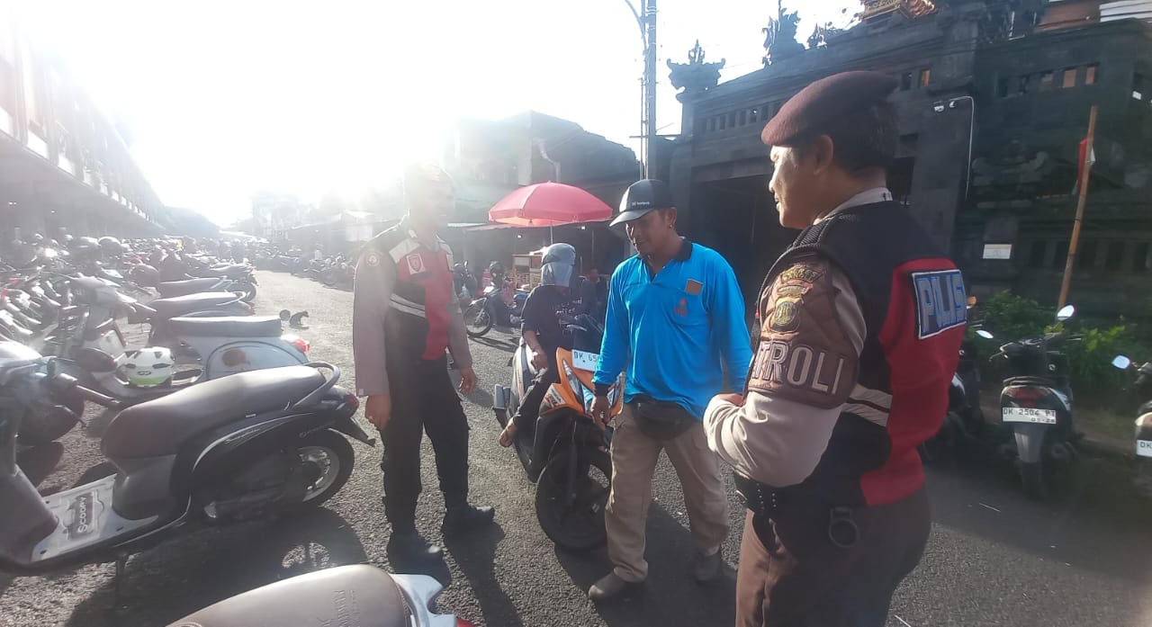 PERKECIL RUANG GERAK AKSI CURANMOR DIWILKUM BANGLI PERSONIL SAMAPTA POLRES BANGLI SAMBANGI TUKANG PARKIR