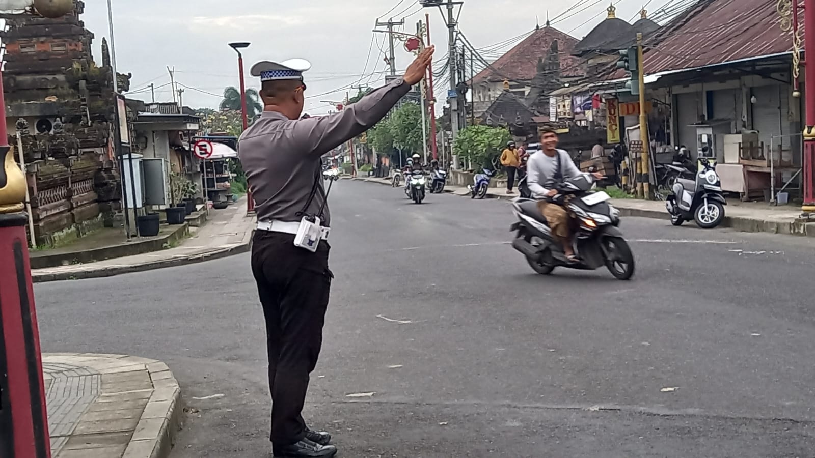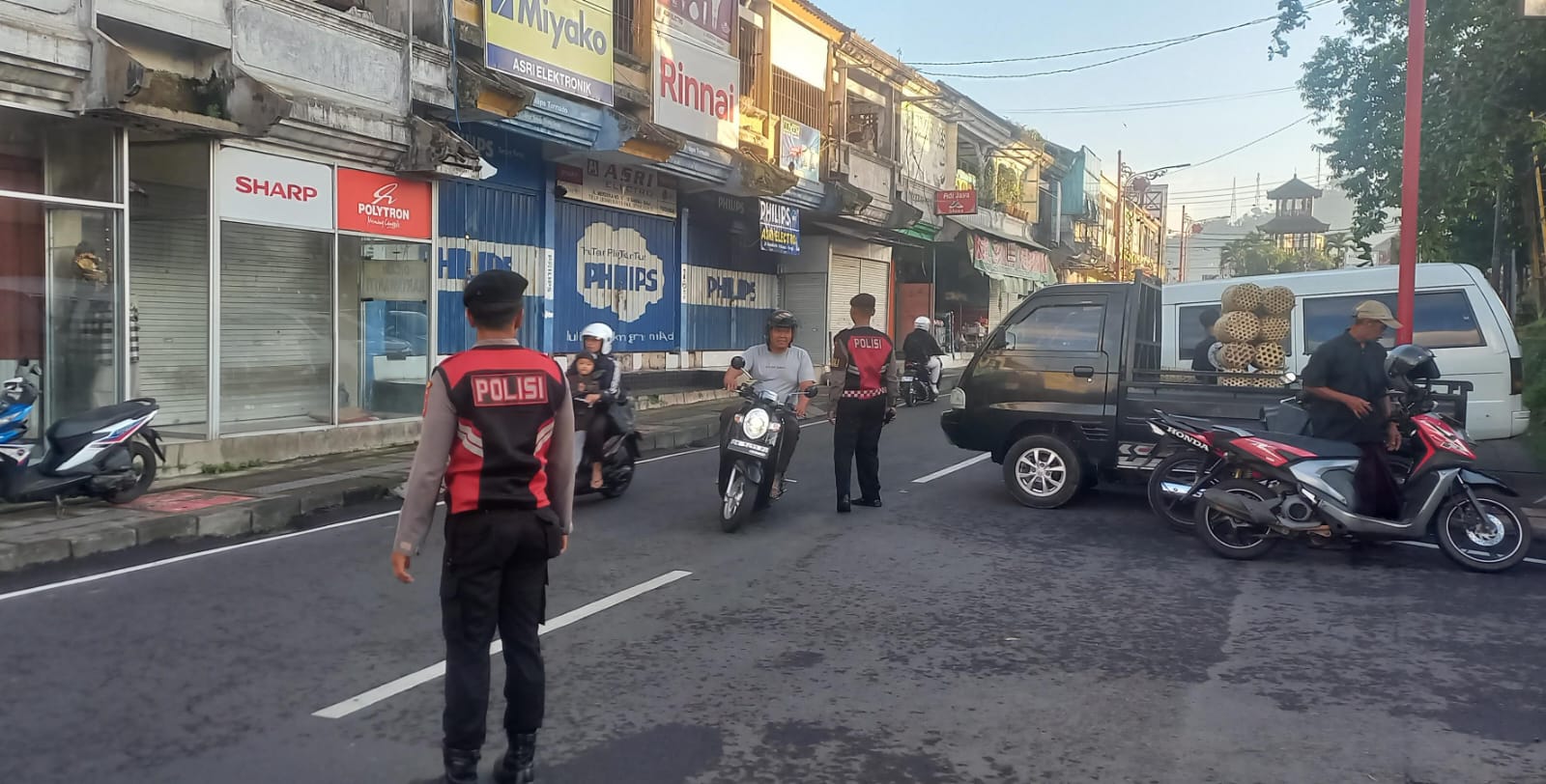 Wujud Pelayanan Kepada Masyarakat di Pagi Hari Personil Polsek Bangli Laksanakan Pengaturan Arus Lalulintas