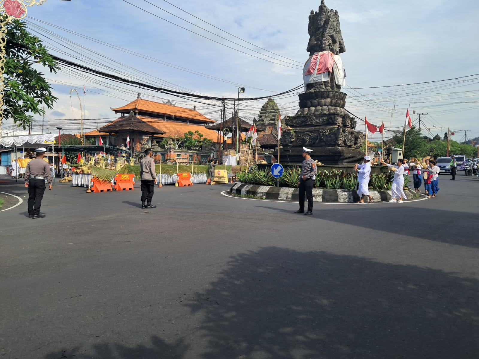 Personil Polsek Bangli Bersinergi Dengan Instansi Terkait Laksanakan Pengamanan Kegiatan Upacara Nangluk Merana