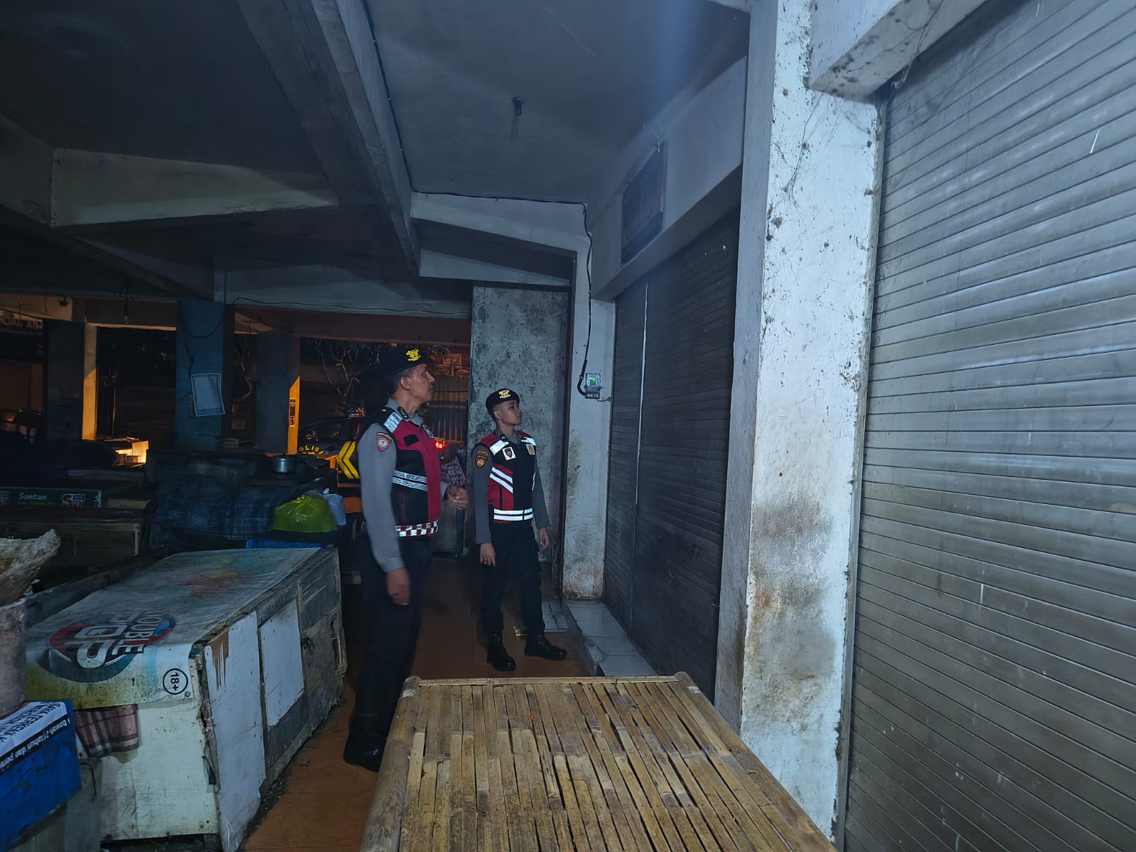 Antisipasi Gangguan Kamtibmas Pada Malam Hari, Personil Samapta Polres Bangli Lakukan Patroli Malam di Areal Pertokoan Pasar Kidul Bangli.