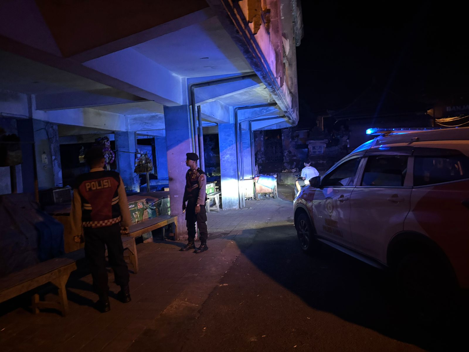 ANTISIPASI GANGGUAN KAMTIBMAS PADA JAM RAWAN MALAM HARI, SAT SAMAPTA POLRES BANGLI GENCARKAN PATROLI KRYD DI AREAL PERTOKOAN PASAR KIDUL
