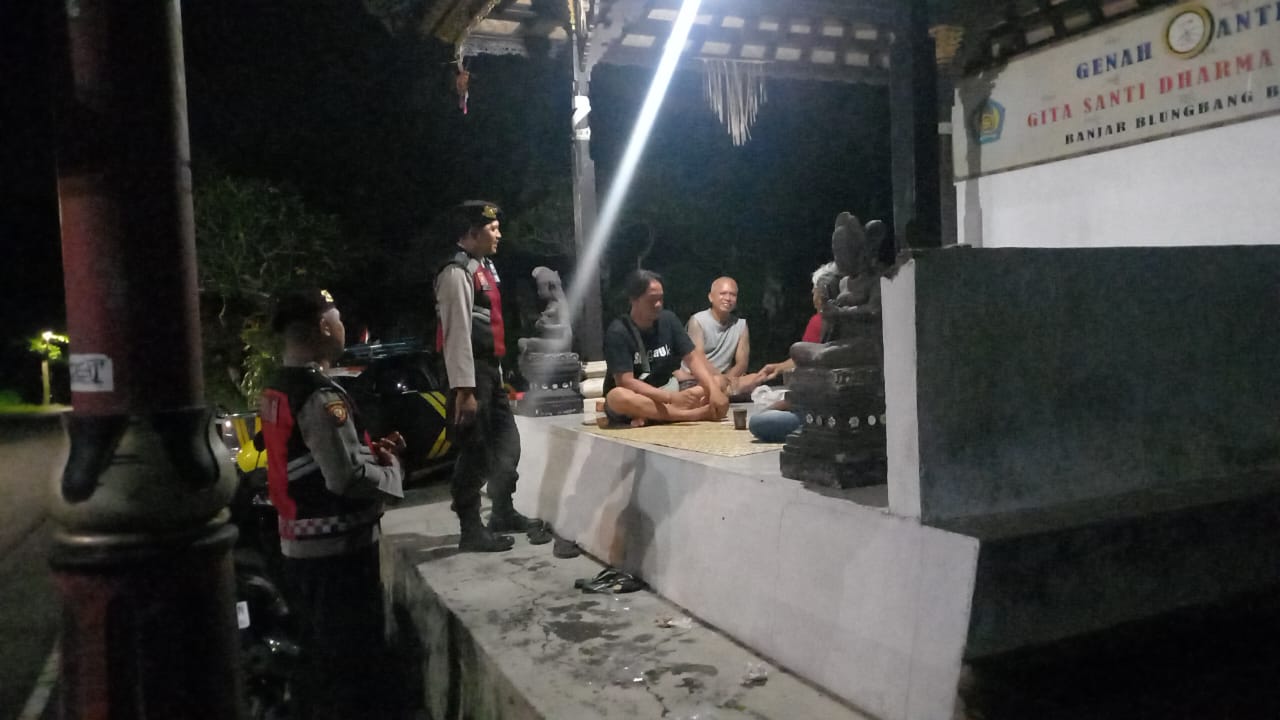 Sat Samapta Melaksanakan Patroli Dialogis Memberikan Himbauan Kamtibmas Kepada Krama Pekemitan Di Pura Dalem Penunggekan, Bangli.