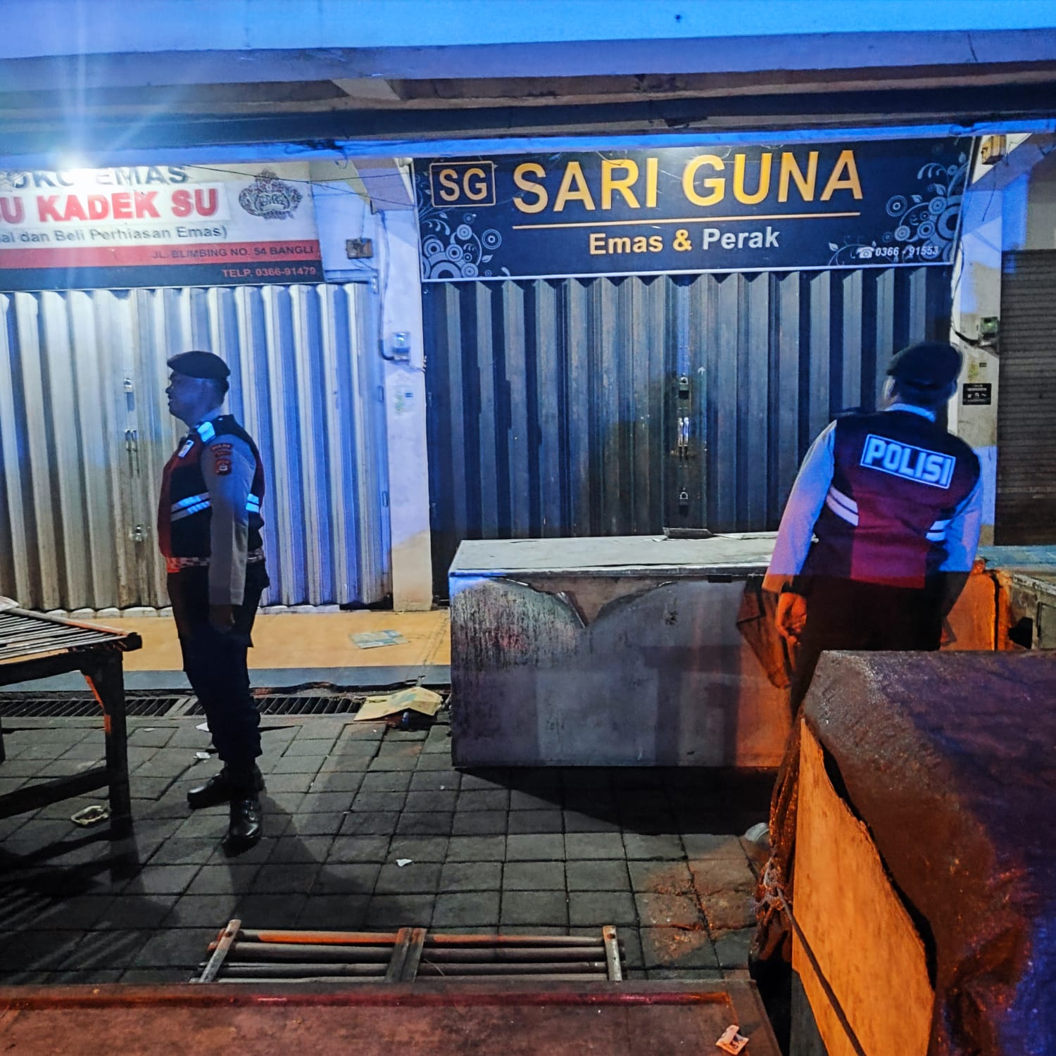 Antisipasi Gangguan Kamtibmas Pada Malam Hari, Personil Samapta Polres Bangli Lakukan Patroli Malam di Areal Pertokoan Pasar Kidul Bangli.