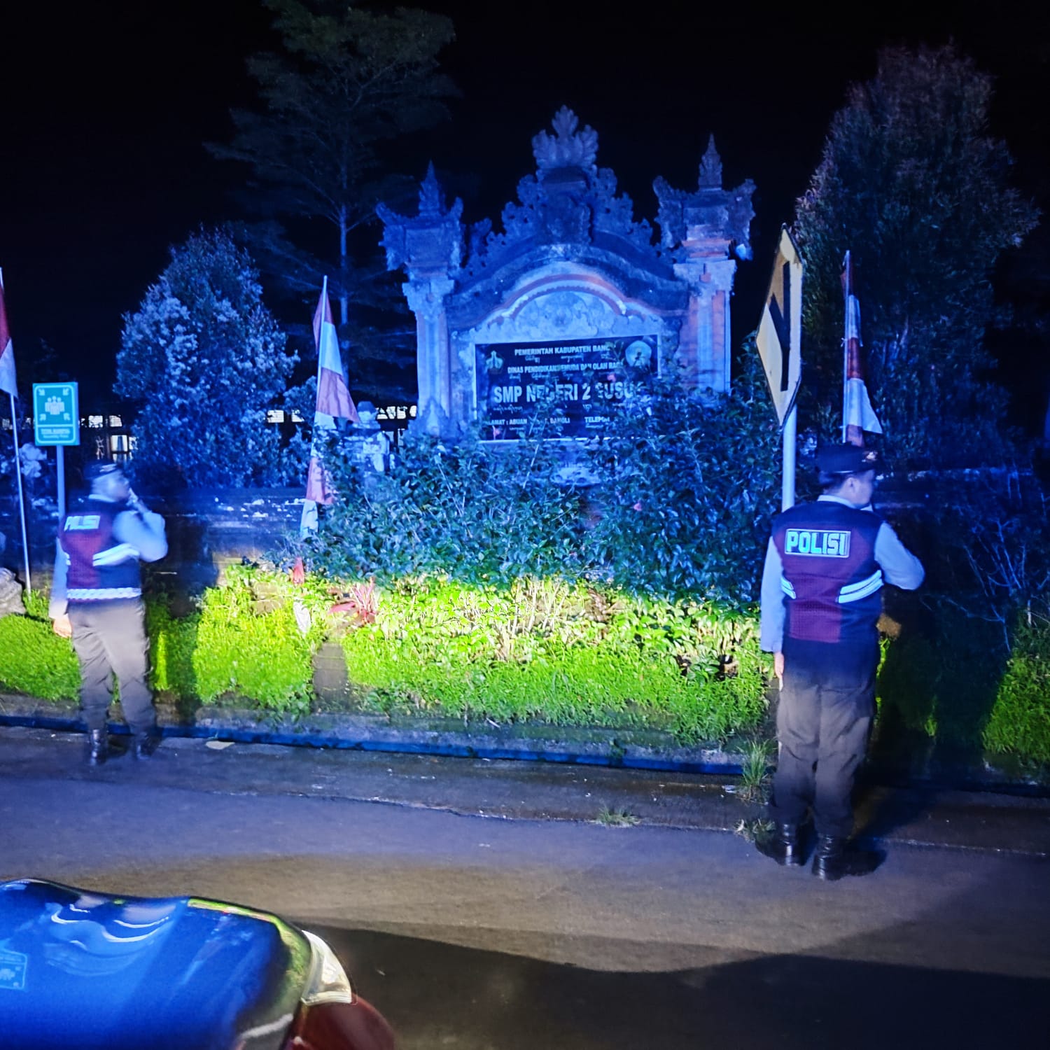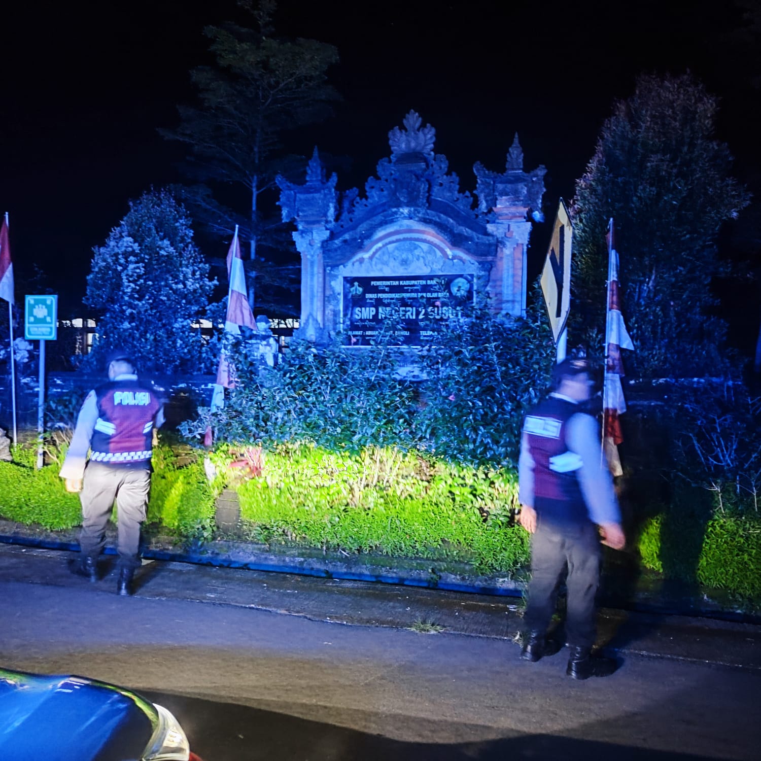 Satuan Samapta Polres Bangli Laksanakan Patroli Pada Malam Hari di SMP NEGERI 2 SUSUT, Untuk Antisipasi Gangguan Kamtibmas.