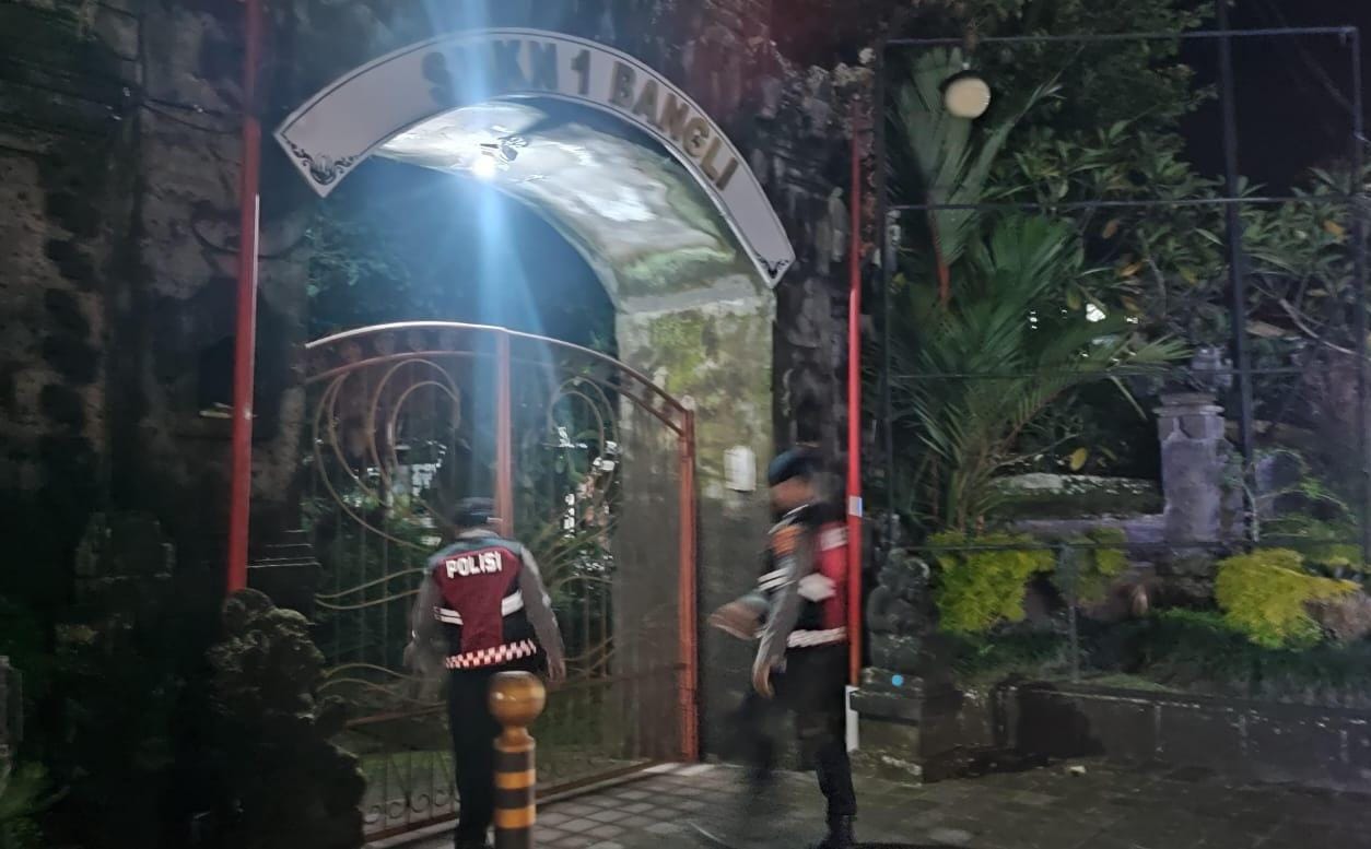 Satuan Samapta Polres Bangli Laksanakan Patroli Pada Malam Hari di SMK N 1 Bangli, Kec. Bangli, Untuk Antisipasi Gangguan Kamtibmas.
