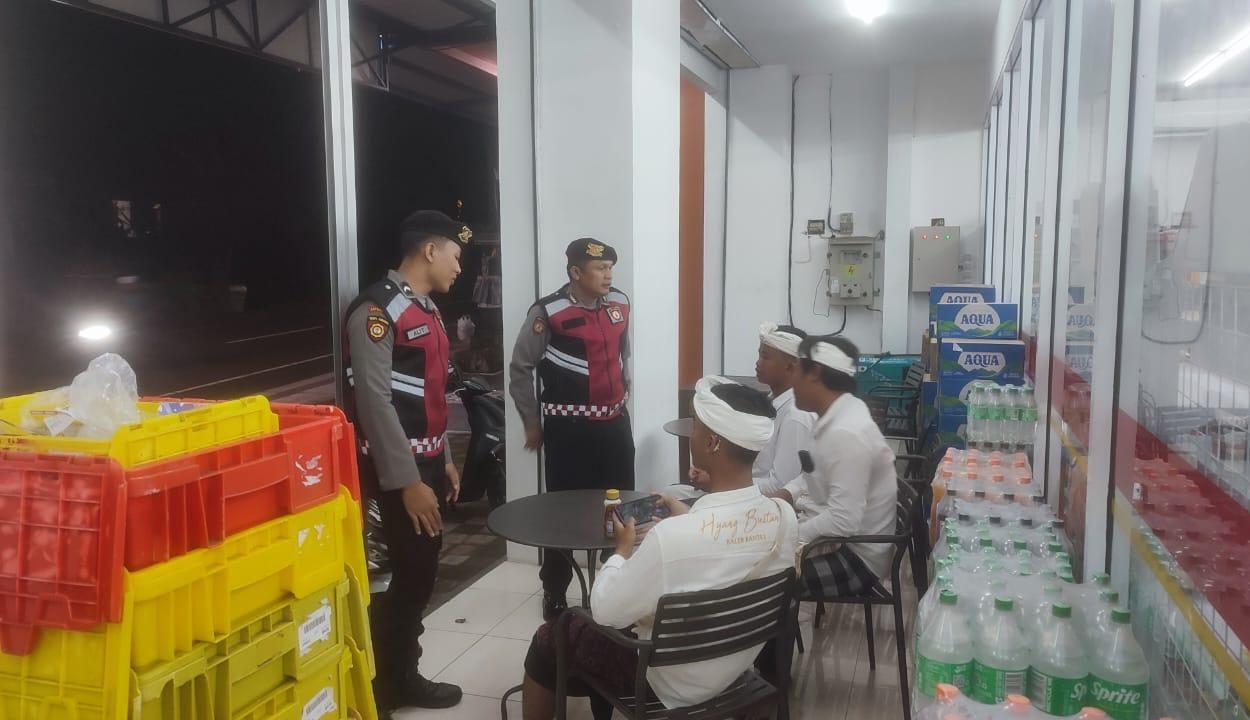 Antisipasi Gangguan Kamtibmas Pada Malam Hari, Personil Samapta Polres Bangli Lakukan Patroli Malam di Areal Pertokoan Pasar Kidul Bangli.