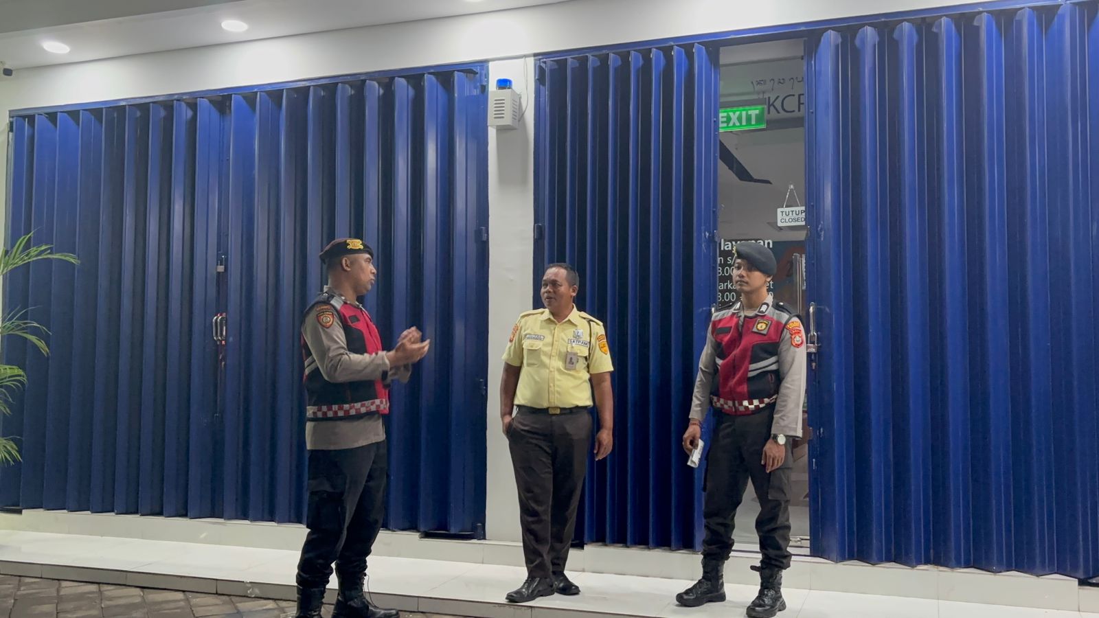 Antisipasi Gangguan Kamtibmas Pada Malam Hari, Personil Samapta Polres Bangli Lakukan Patroli Malam di Areal Pertokoan Pasar Kidul Bangli.