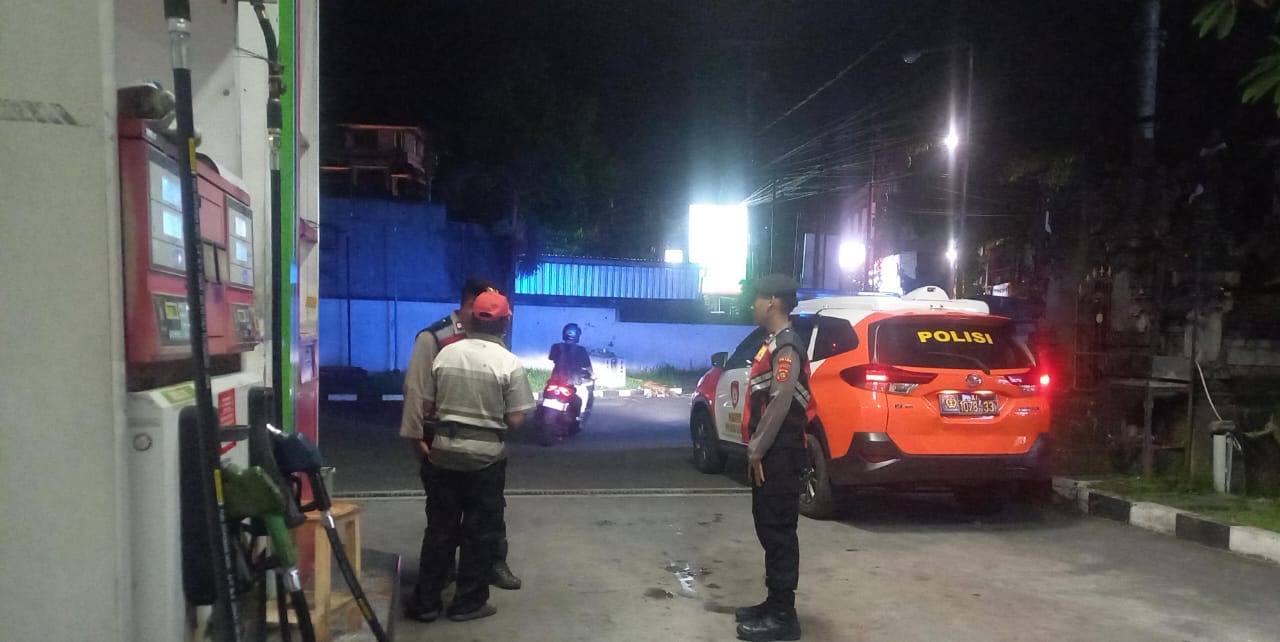 Antisipasi Gangguan Kamtibmas Pada Malam Hari, Personil Samapta Polres Bangli Lakukan Patroli Malam di Areal Pertokoan Pasar Kidul Bangli.