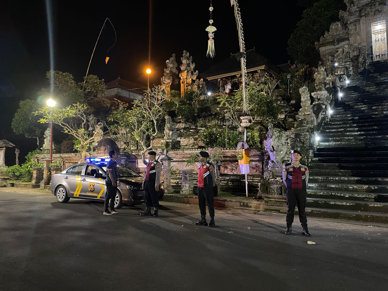 Menjaga Situasi Tetap Kondusi Pada Malam Hari,Sat Samapta Polres Bangli Sambangi Tempat Suci Pura Penataran Er Malet, Bangli