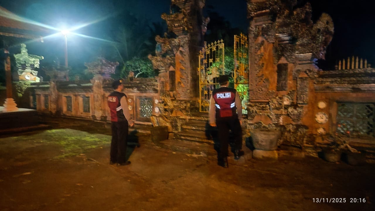 Menjaga Situasi Tetap Kondusi Pada Malam Hari, Sat Samapta Polres Bangli Sambangi Tempat Suci, Pura penataran puseh bale agung