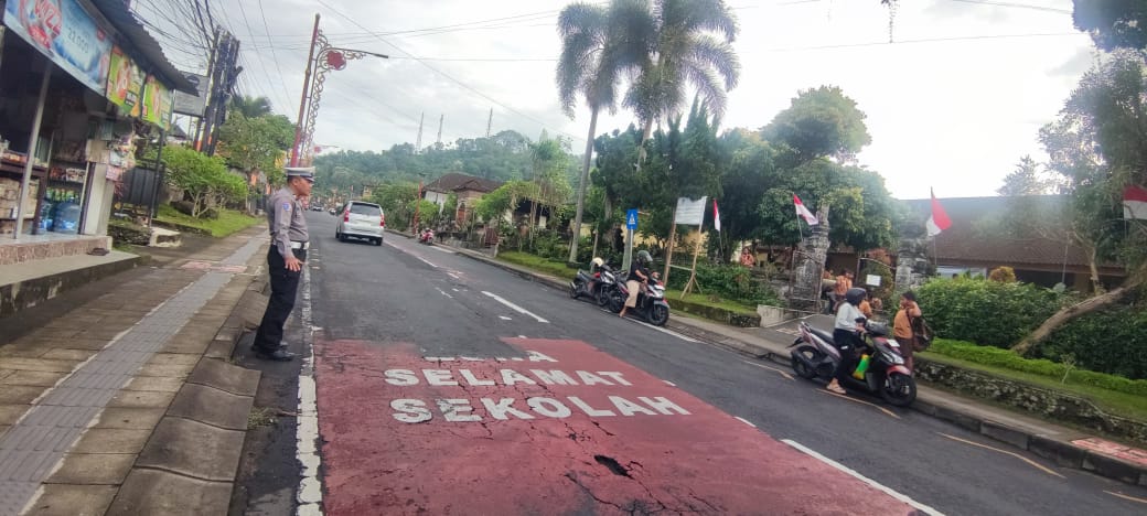 Wujud Pelayanan di Pagi Hari, Personil Polsek Bangli Laksanakan Pengaturan Arus Lalulintas