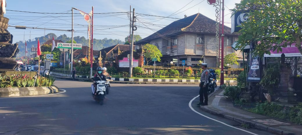 Wujud Pelayanan di Pagi Hari, Personil Polsek Bangli Laksanakan Pengaturan Arus Lalulintas