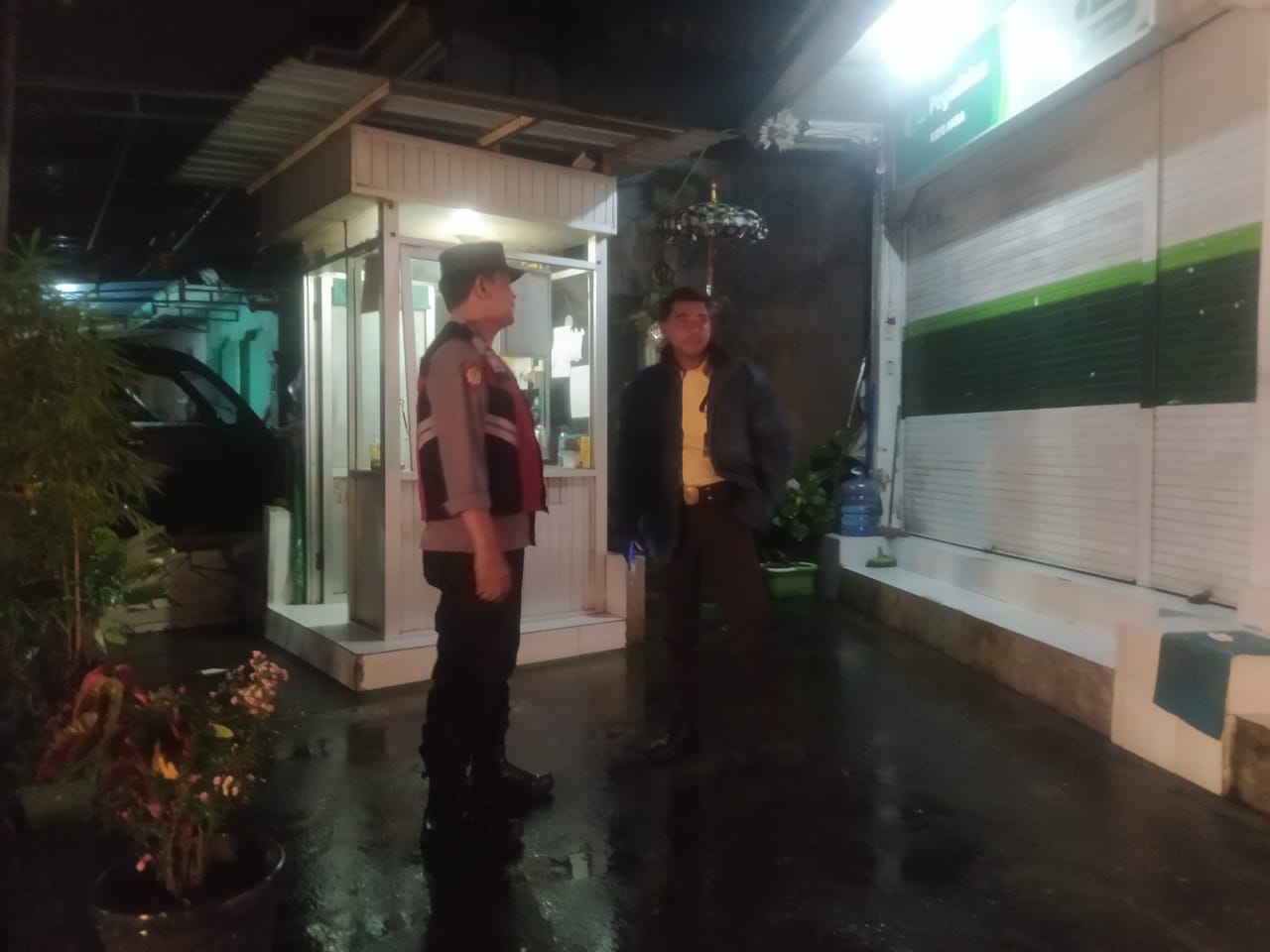 Anggota Polsek Susut Melaksanakan Patroli Dialogis Dengan Satpam Tentang Kamtibmas Di Wilkum Polsek Susut.