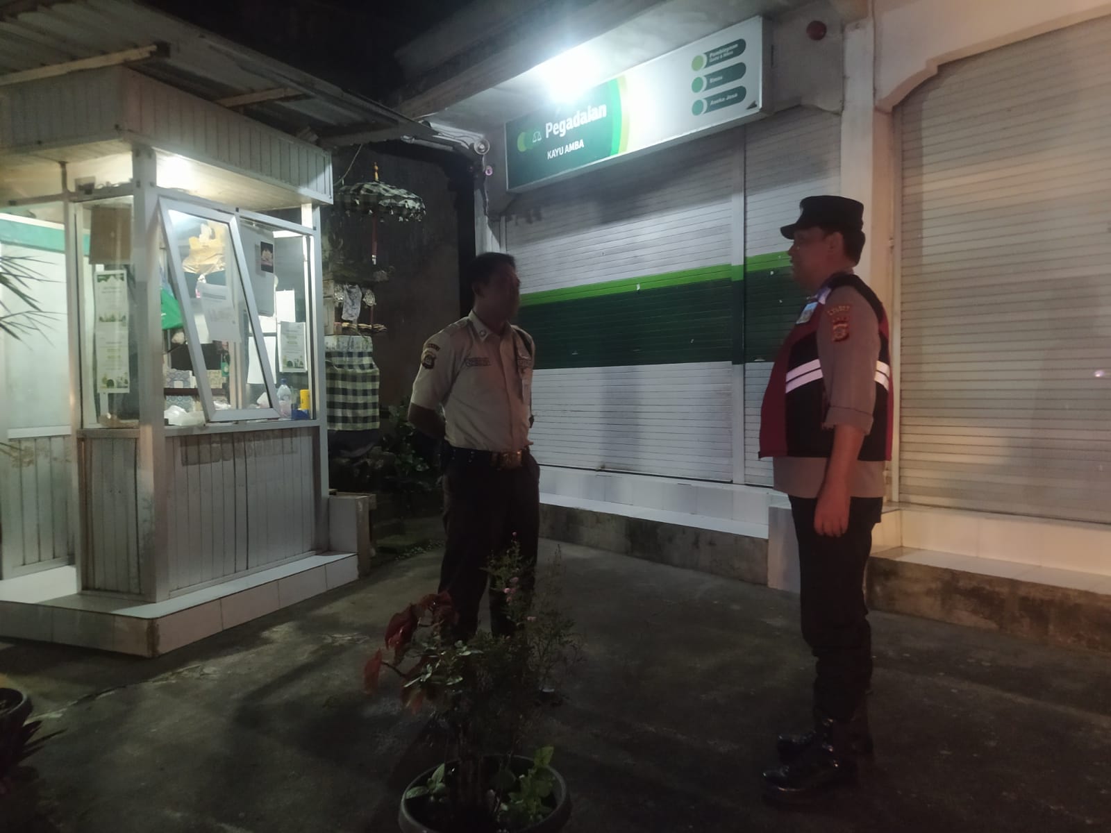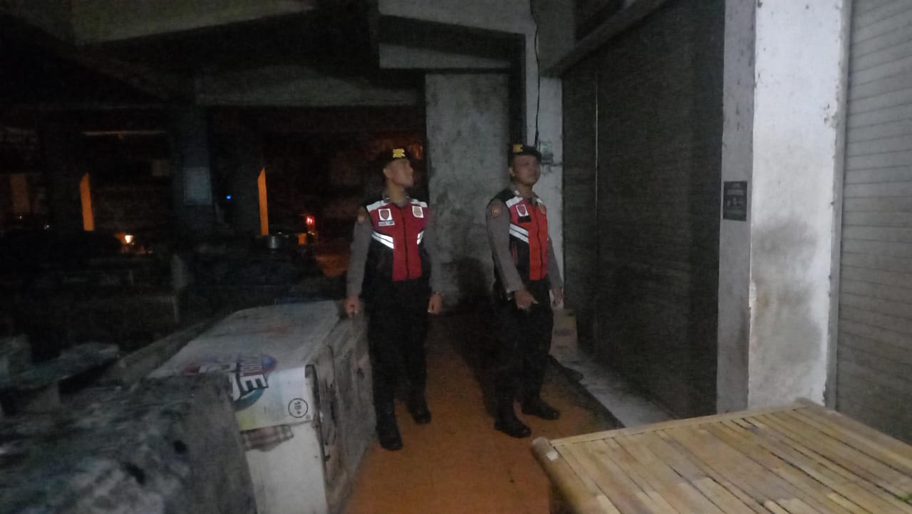 Antisipasi Gangguan Kamtibmas Pada Malam Hari, Personil Samapta Polres Bangli Lakukan Patroli Malam di Areal Pertokoan Pasar Kidul Bangli.
