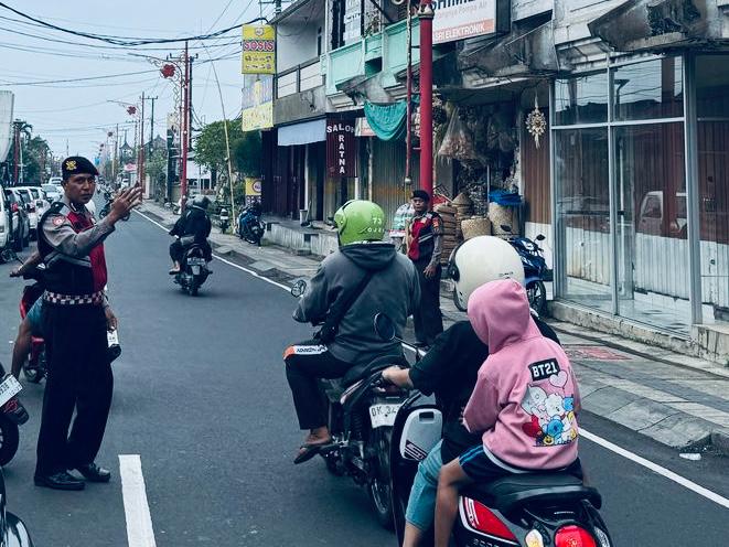 ATENSI ARUS LALULINTAS TETAP LANCAR, UNIT TURJAWALI SATUAN SAMAPTA RES BANGLI LAKSANAKAN PENGATURAN