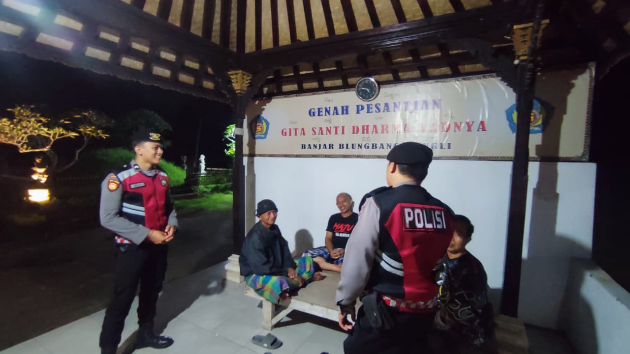 Sat Samapta Melaksanakan Patroli Dialogis Memberikan Himbauan Kamtibmas Kepada Krama Pekemitan Di Pura Dalem Penunggekan, Bangli.