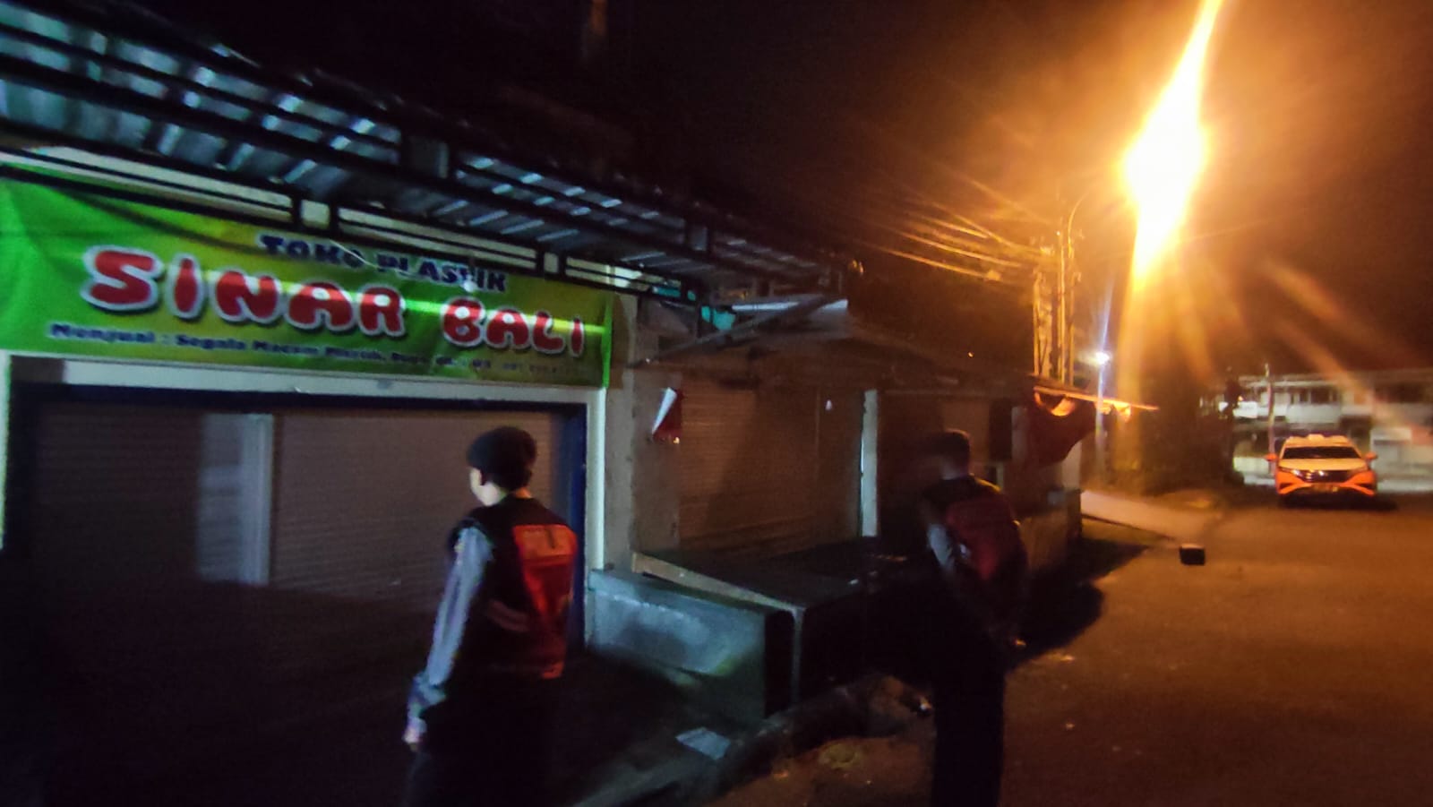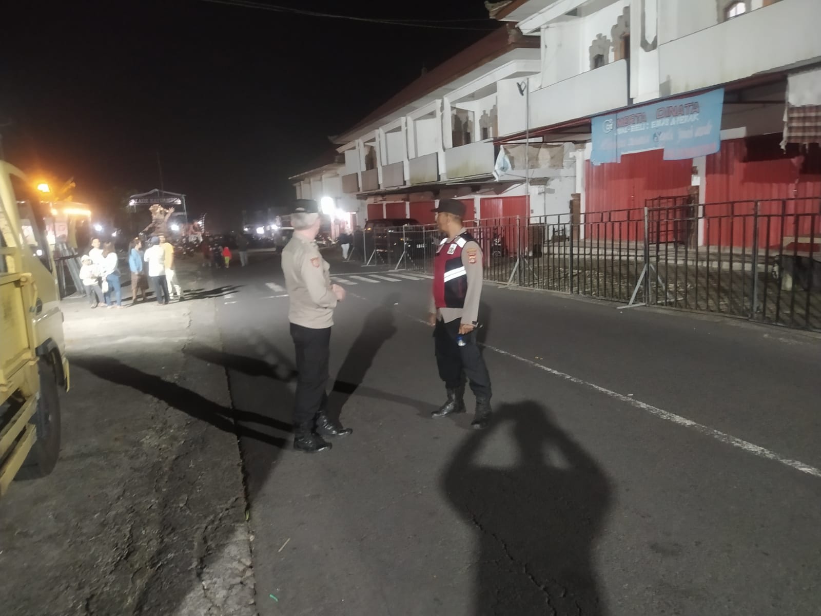 Antisipasi Gangguan Kamtibmas Pada Malam Hari, Personil Samapta Polres Bangli Lakukan Patroli Malam di Areal Pertokoan Pasar Kidul Bangli.