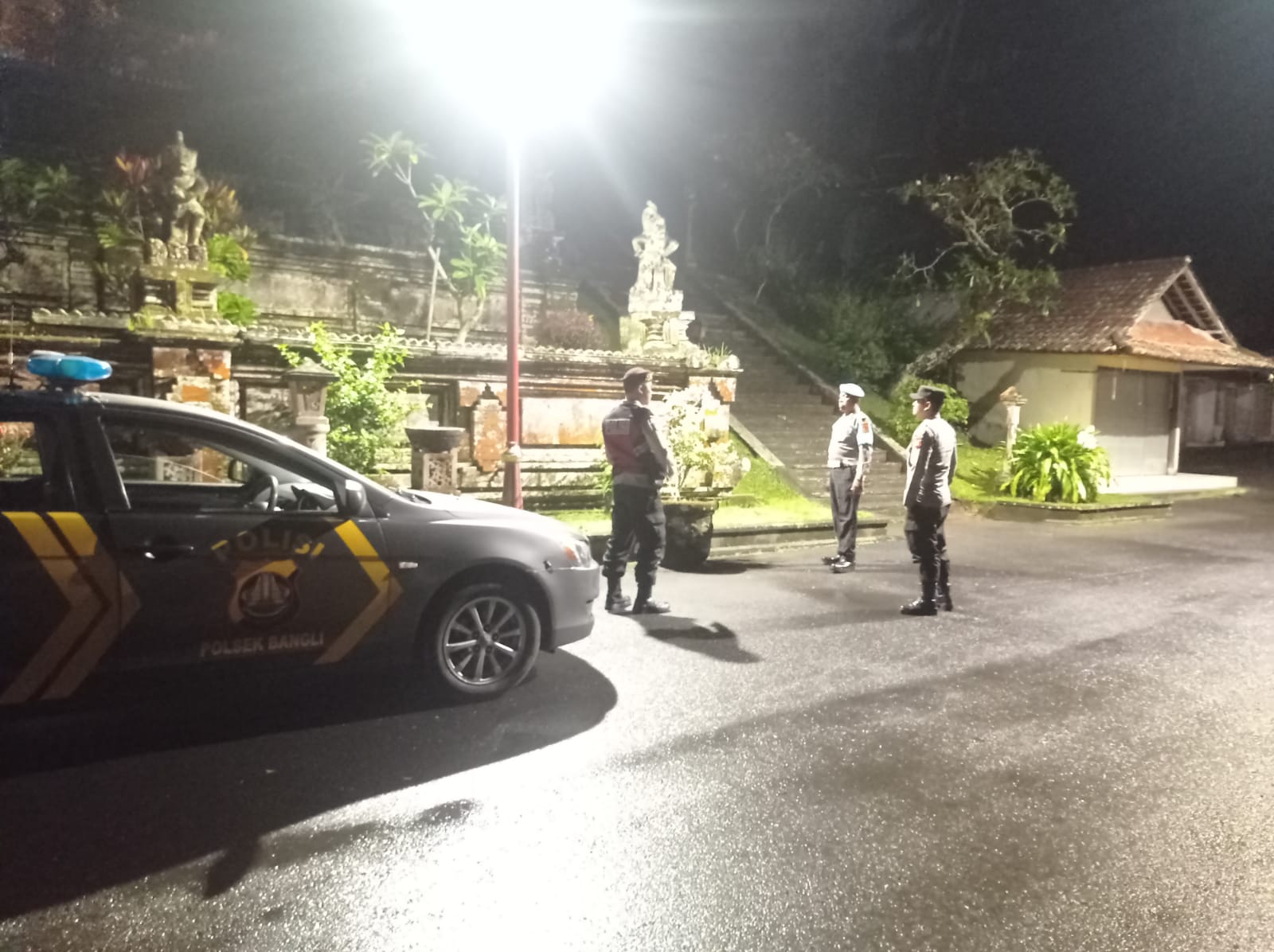 Menjaga Situasi Tetap Kondusi Pada Malam Hari,Sat Samapta Polres Bangli Sambangi Tempat Suci Pura Penataran Er Malet ,Br Pule, Bangli