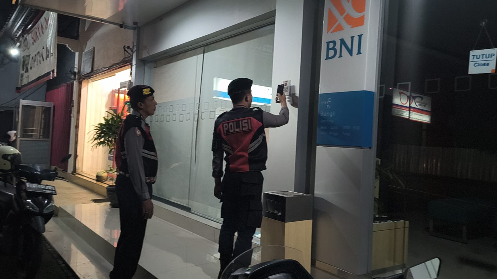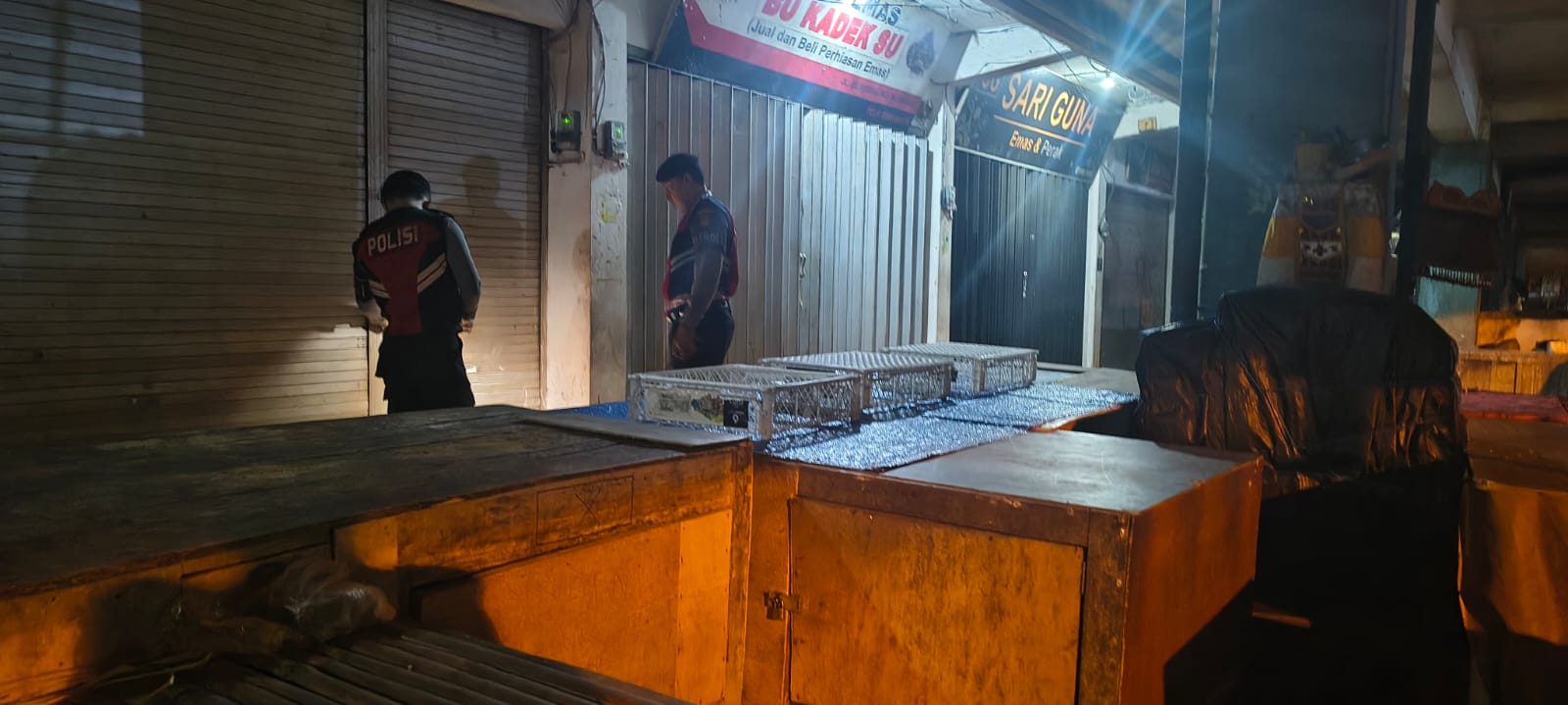 Antisipasi Gangguan Kamtibmas Pada Malam Hari, Personil Samapta Polres Bangli Lakukan Patroli Malam di Areal Pertokoan Pasar Kidul Bangli.