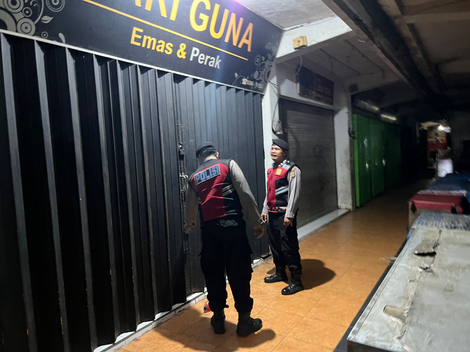 Antisipasi Gangguan Kamtibmas Pada Malam Hari, Personil Samapta Polres Bangli Lakukan Patroli Malam di Areal Pertokoan Pasar Kidul Bangli.