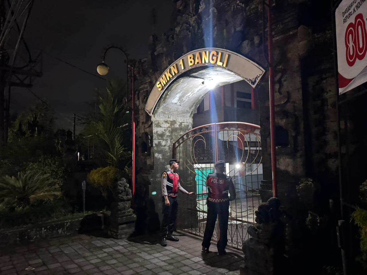 Satuan Samapta Polres Bangli Laksanakan Patroli Pada Malam Hari di SMK N 1 Bangli, Kel. Kawan, Kec. Bangli, Untuk Antisipasi Gangguan Kamtibmas.