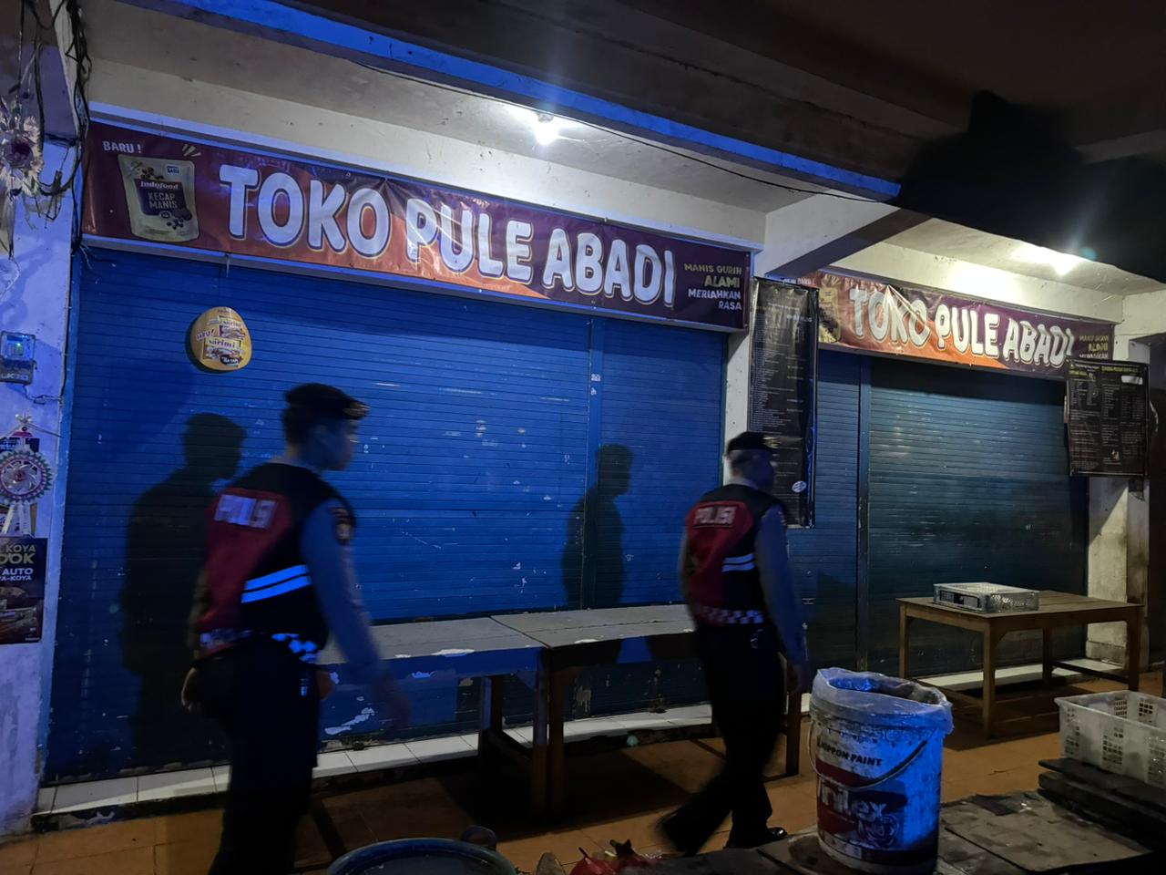 Antisipasi Gangguan Kamtibmas Pada Malam Hari, Personil Samapta Polres Bangli Lakukan Patroli Malam di Areal Pertokoan Pasar Kidul Bangli.