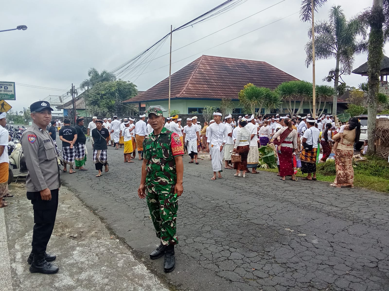 Sinergi TNI-Polri dan Pecalang Amankan Upacara Mecaru Nawa Gempang di Desa Sekaan