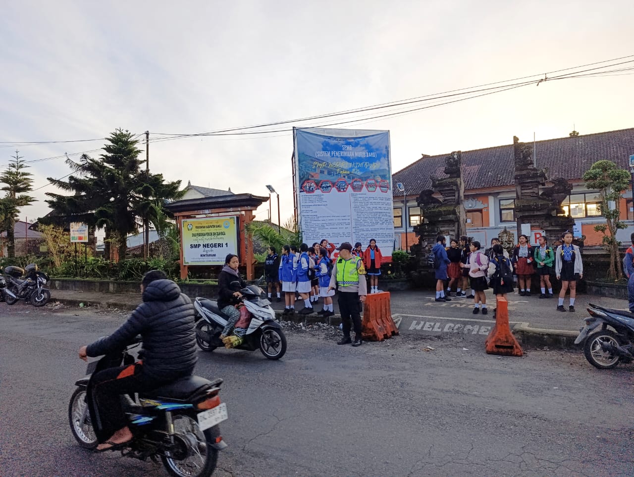 Satuan Samapta Polres Bangli Laksanakan Patroli Pada Malam Hari di SMK N 1 Bangli, Kel. Kawan, Kec. Bangli, Untuk Antisipasi Gangguan Kamtibmas.