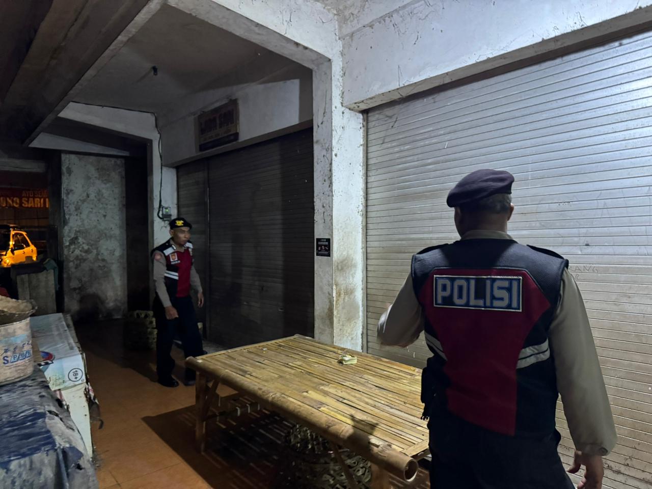 Antisipasi Gangguan Kamtibmas Pada Malam Hari, Personil Samapta Polres Bangli Lakukan Patroli Malam di Areal Pertokoan Pasar Kidul Bangli.