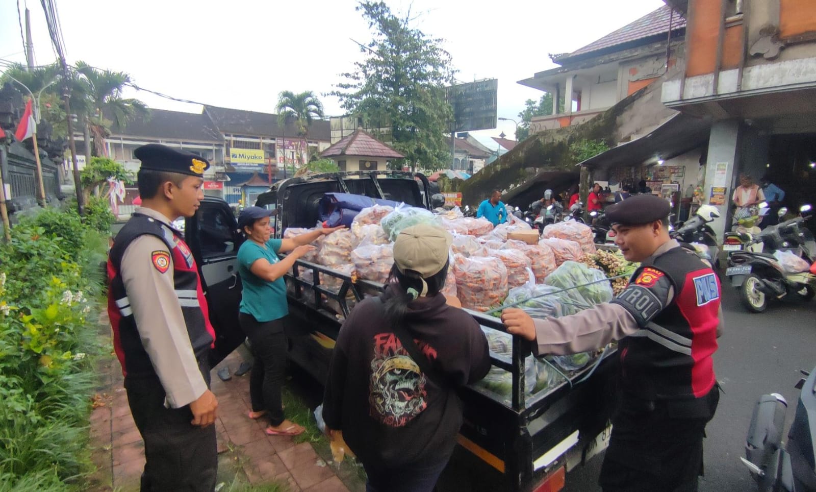 Atensi Arus Lalu Lintas, Unit Turjawali Sat Samapta Polres Bangli Laksanakan Pengaturan di Depan Pasar Kidul
