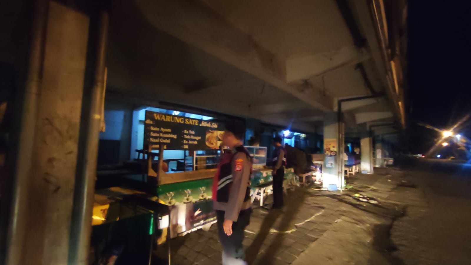 Antisipasi Gangguan Kamtibmas Pada Malam Hari, Personil Samapta Polres Bangli Lakukan Patroli Malam di Areal Pertokoan Pasar Kidul Bangli.
