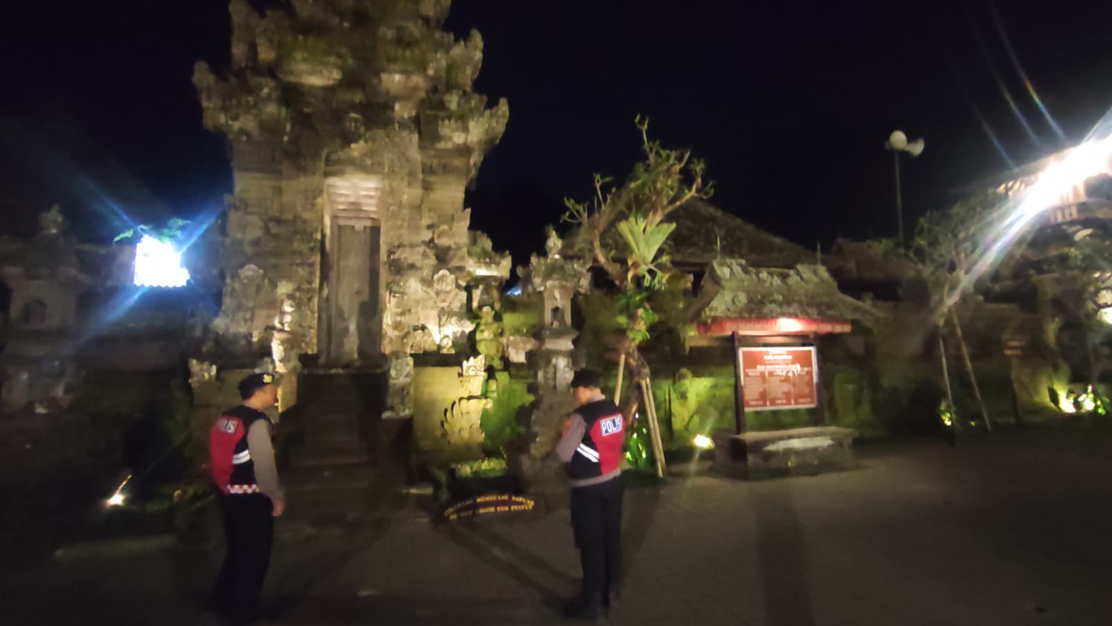 Menjaga Situasi Tetap Kondusi Pada Malam Hari, Sat Samapta Polres Bangli Sambangi Tempat Suci Pura Penataran Desa Penglipuran, Kec. Bangli